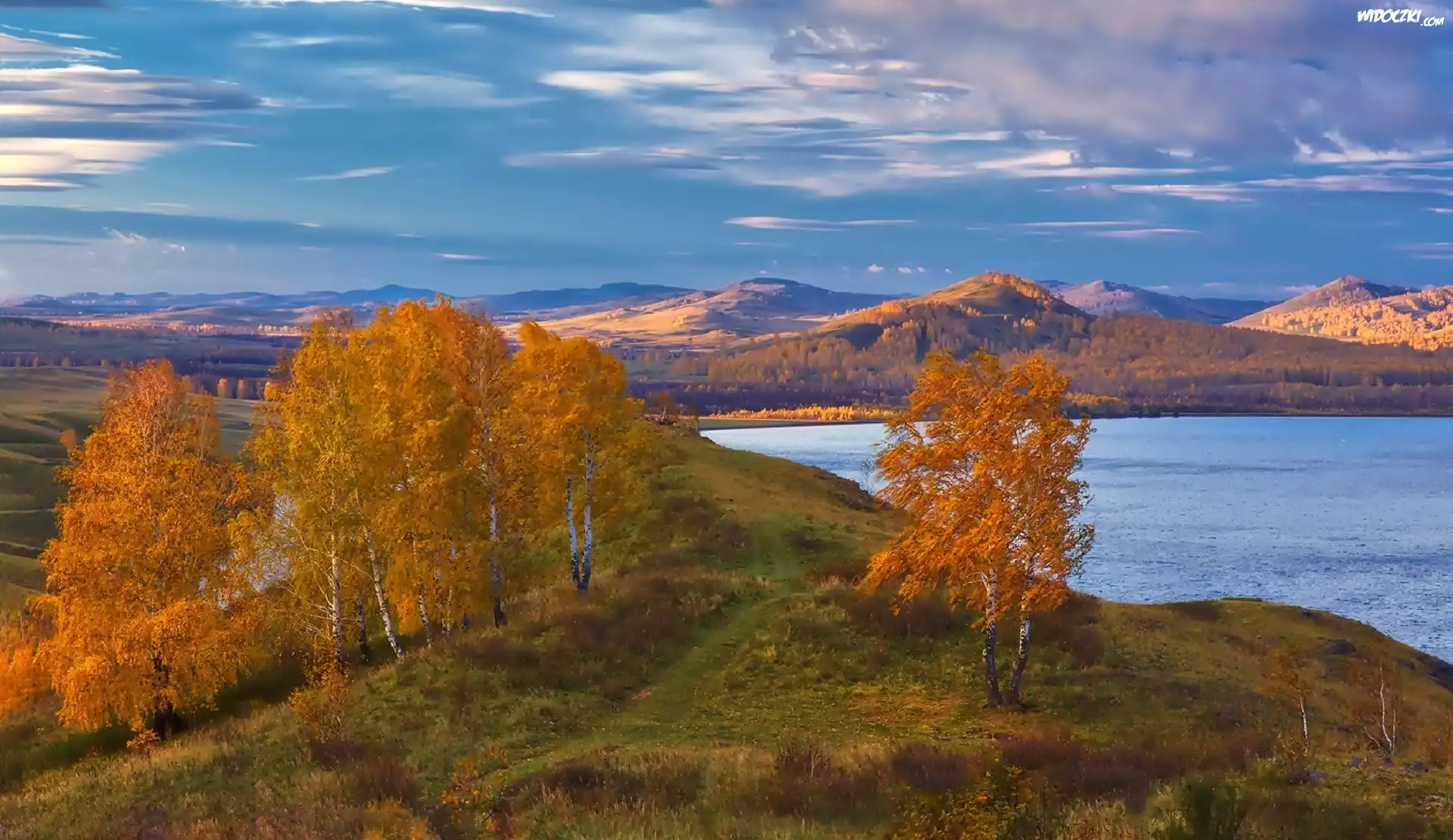 Zdjęcia, Wzgórza, Jezioro, Jesień, Brzozy, Ural