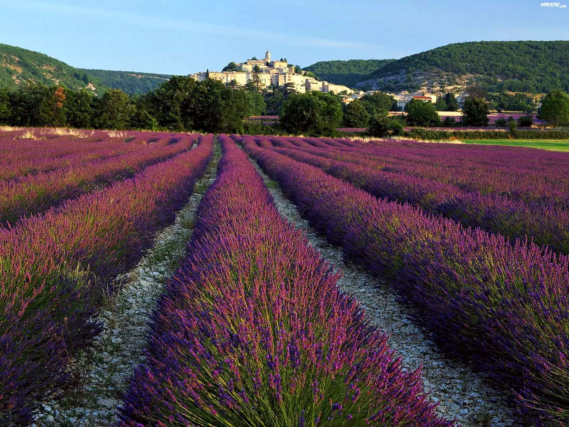 Zdjęcia, Pole, Lawendy, Wzgórza, Zamek Grignan, Château de Grignan, Prowansja, Francja