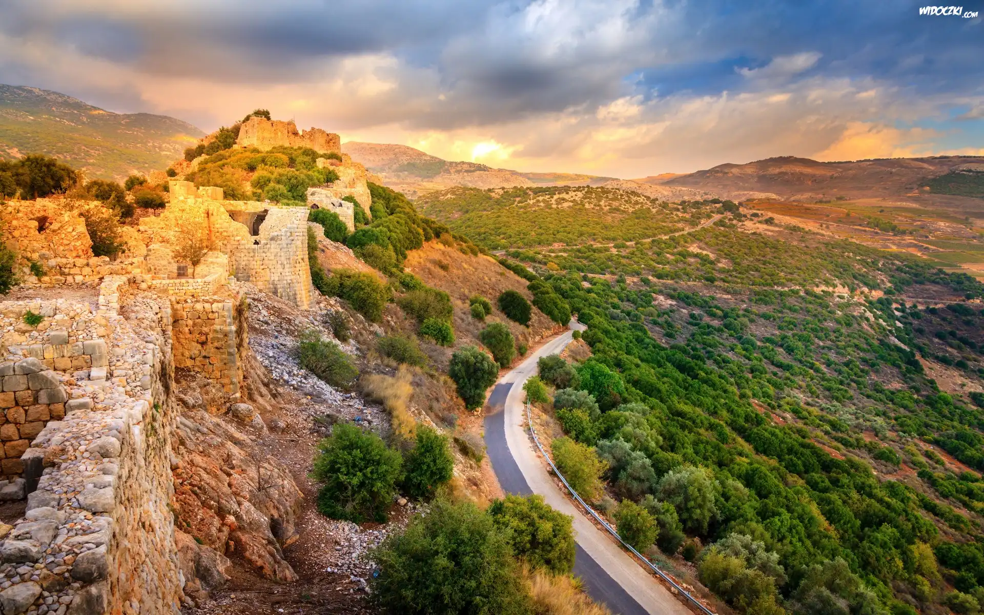 Zdjęcia, Izrael, Nimrod Fortress National Park, Wzgórza Golan, Twierdza Nimrod, Ruiny, Dolina, Droga
