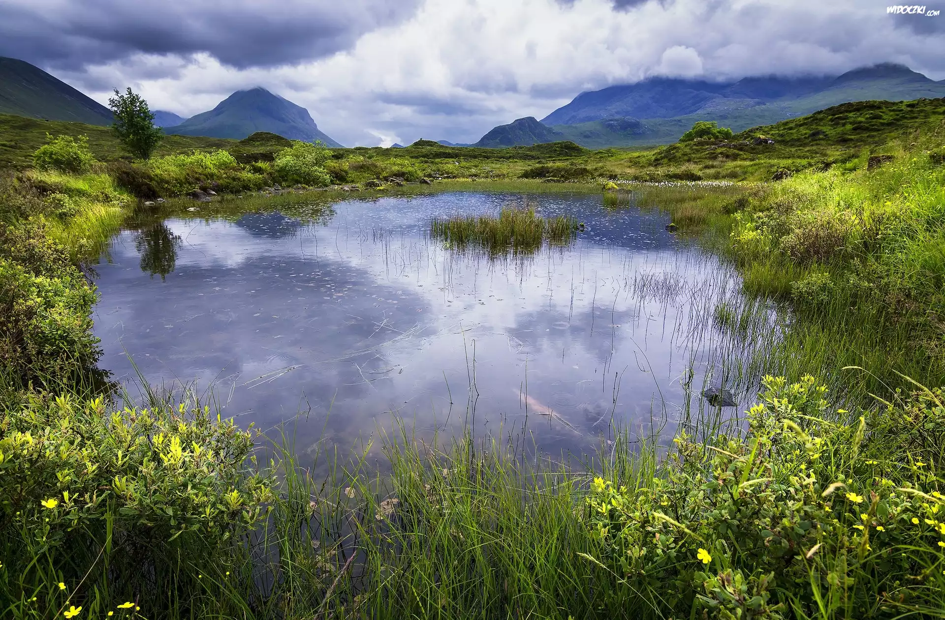 Zdjęcia, Jezioro, Wzgórza, Roślinność