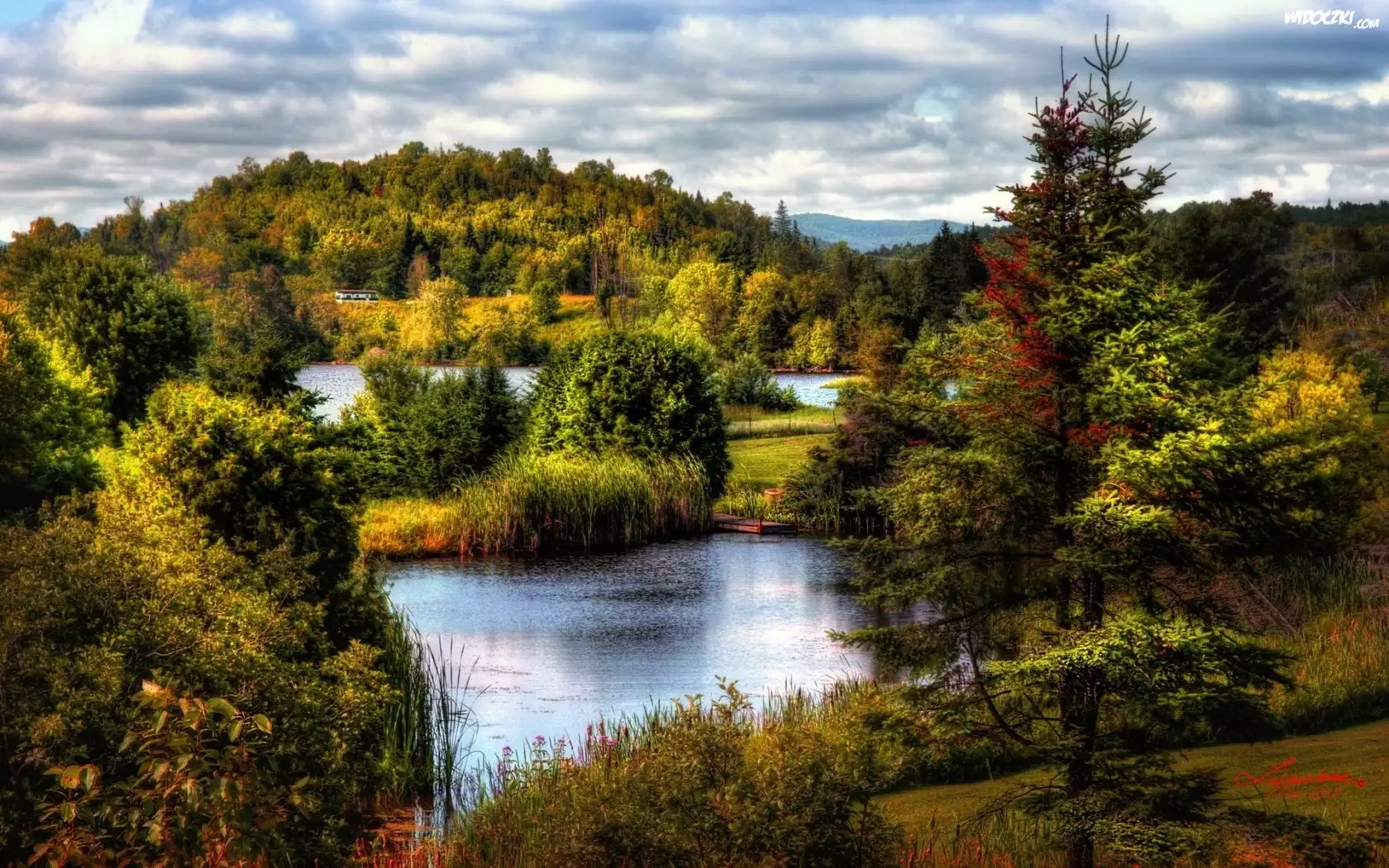 Zdjęcia, Wzgórza, Jeziora, Lasy, Obłoki