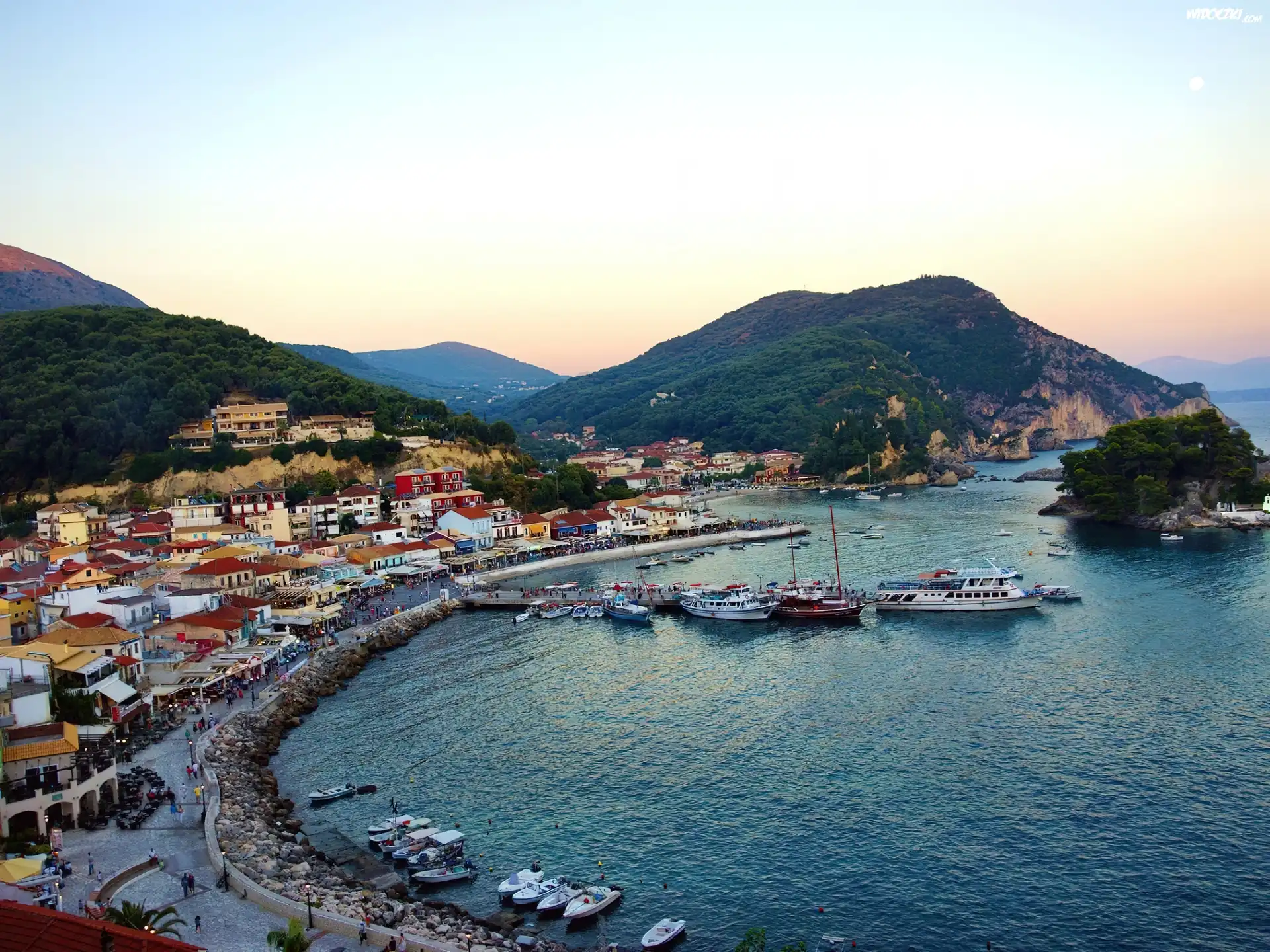Zdjęcia, Wzgórza, Morze, Łodzie, Grecja