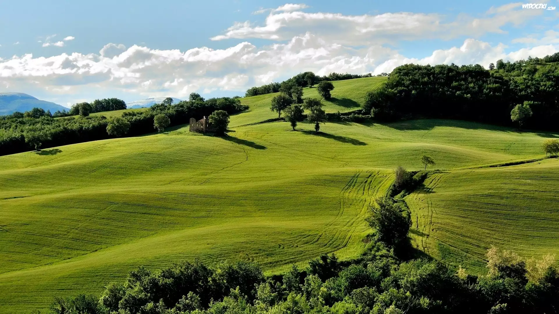 Zdjęcia, Wzgórza, Łąki, Pola, Drzewa