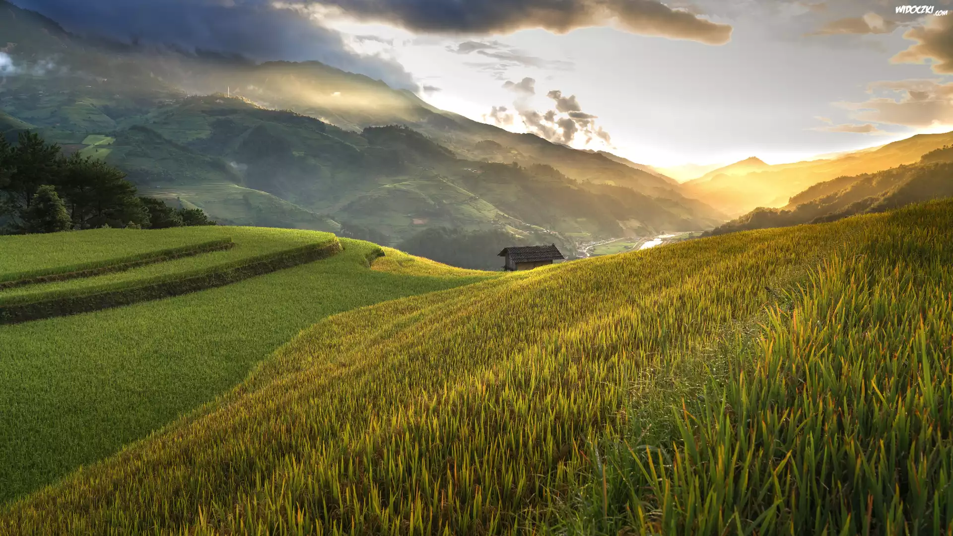 Zdjęcia, Wzgórza, Góry, Dolina, Pola uprawne