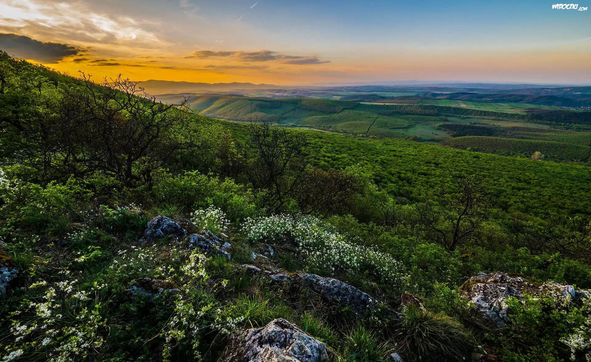 Zdjęcia, Wzgórza, Pola, Roślinność, Drzewa