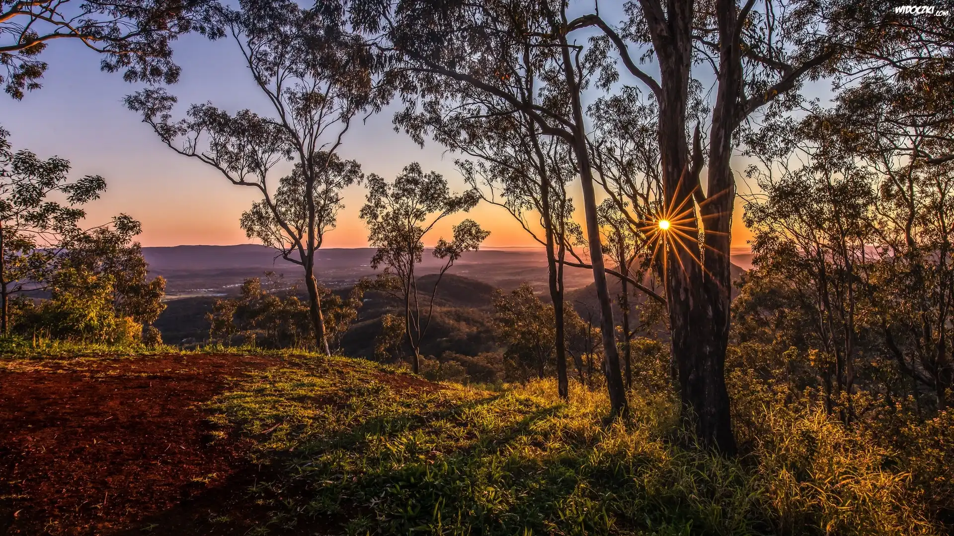 Zdjęcia, Wzgórza, Drzewa, Promienie słońca, Krajobraz