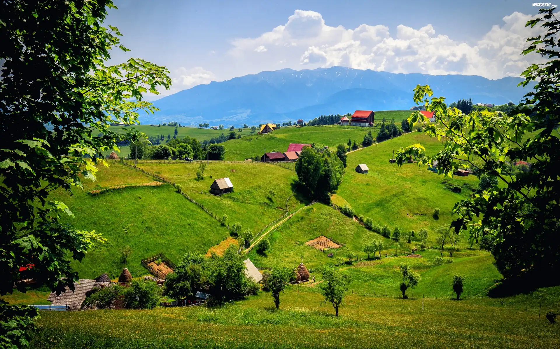 Zdjęcia, Wzgórza, Góry, Zabudowania, Wieś