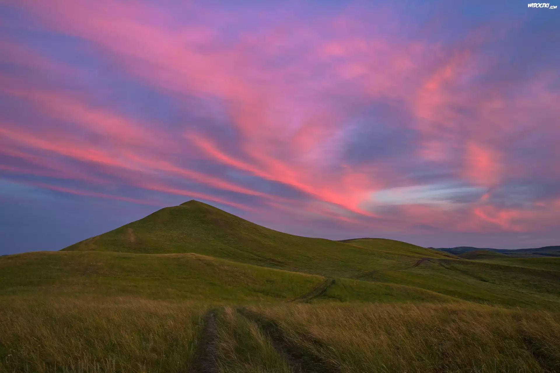 Zdjęcia, Wzgórza, Łąka, Zachód słońca