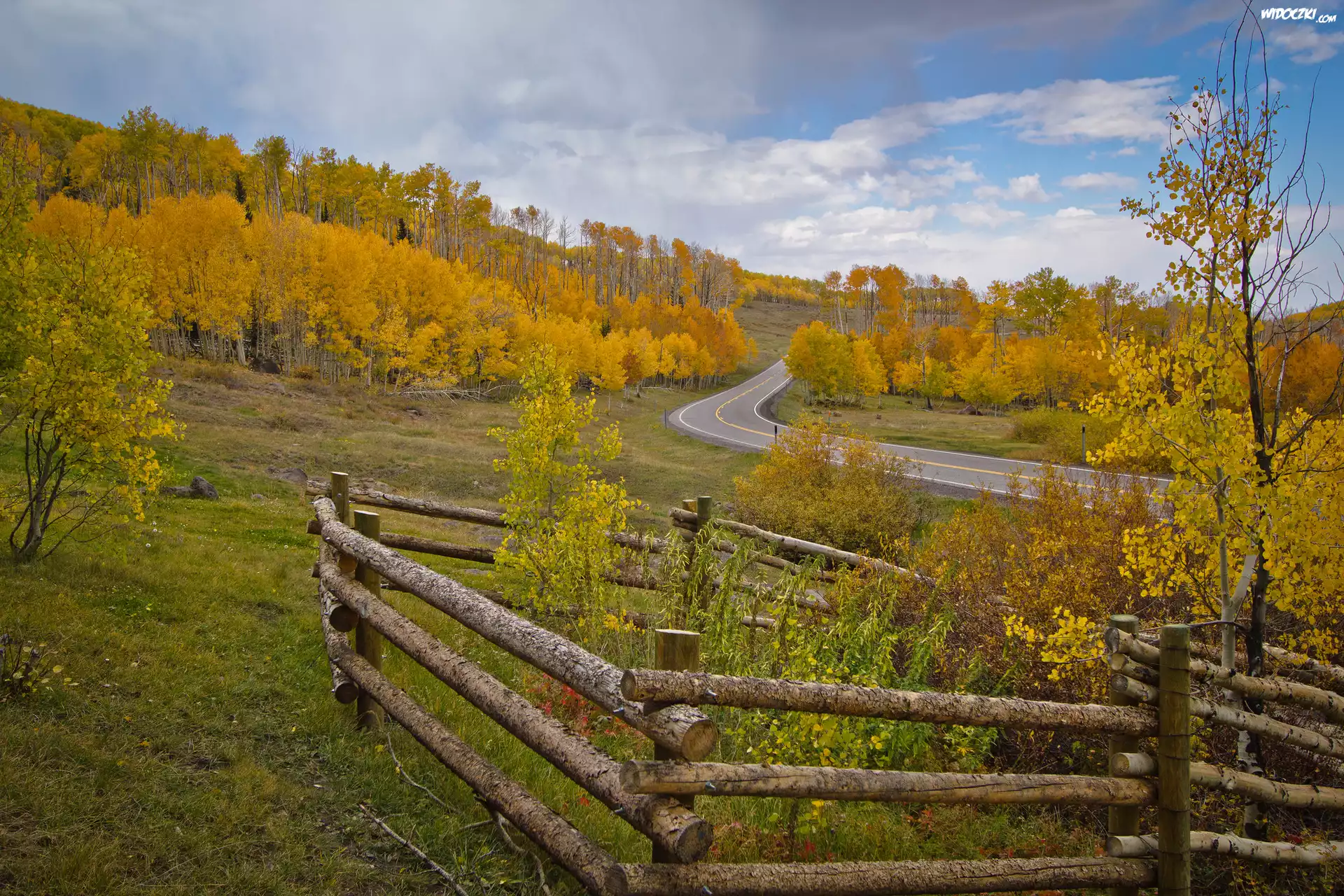 Zdjęcia, Wzgórze, Las, Jesień, Droga, Ogrodzenie