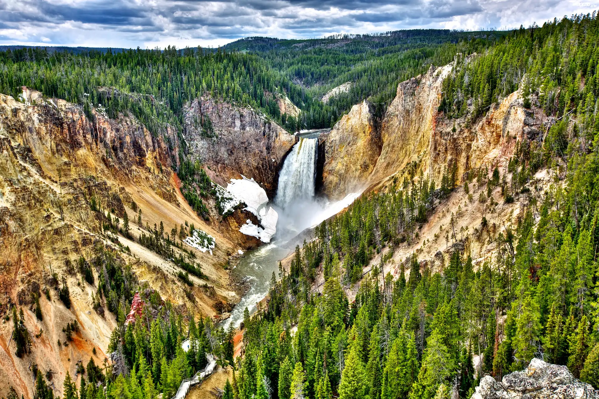 Stany Zjednoczone, Park Narodowy Yellowstone, Wielki Kanion Yellowstone, Wodospad Dolny, Lower Falls, Rzeka Yellowstone, Skały, Góry |
