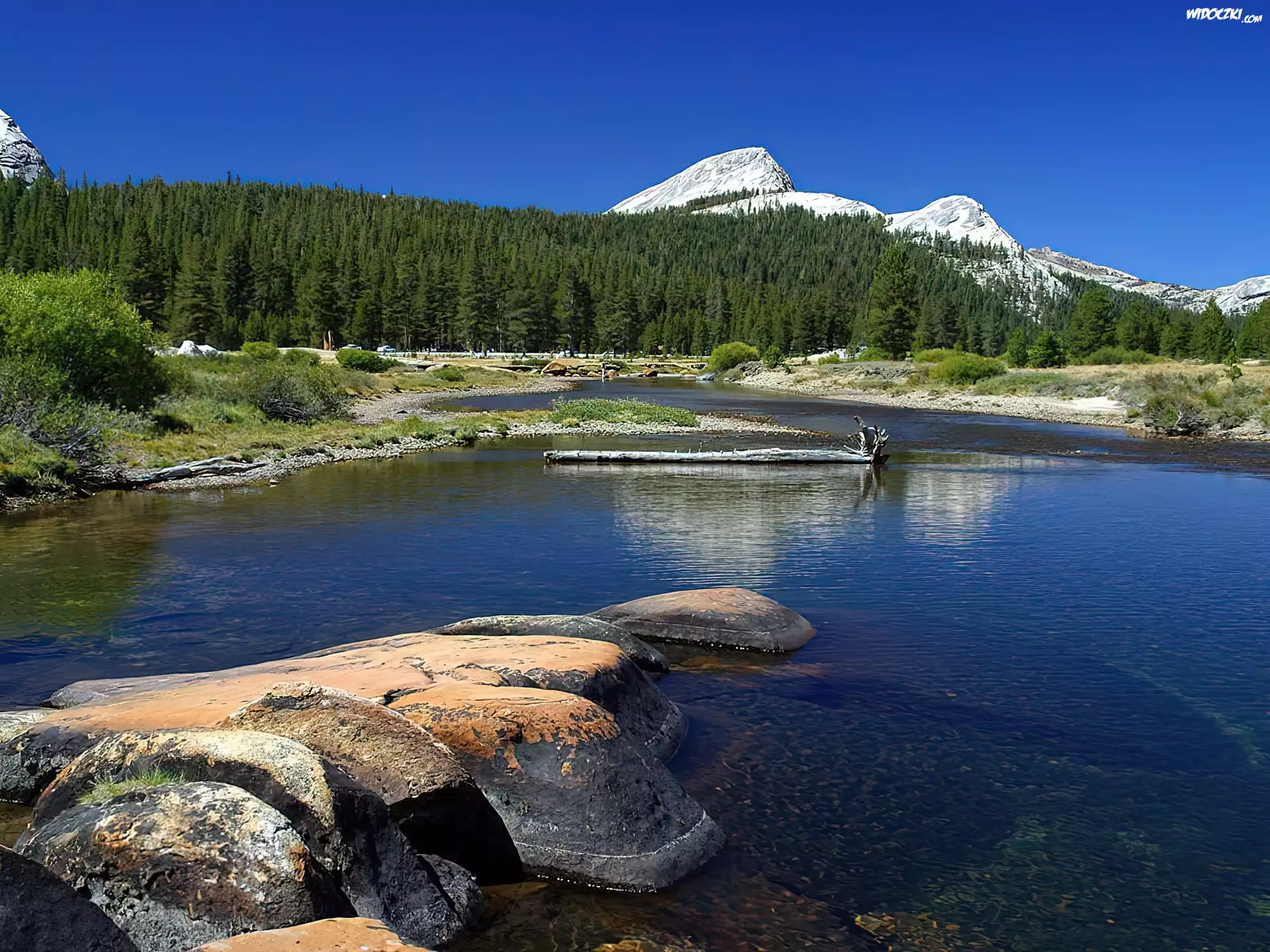 Zdjęcia, Stany Zjednoczone, Stan Kalifornia, Park Narodowy Yosemite, Rzeka, Kamienie, Góry