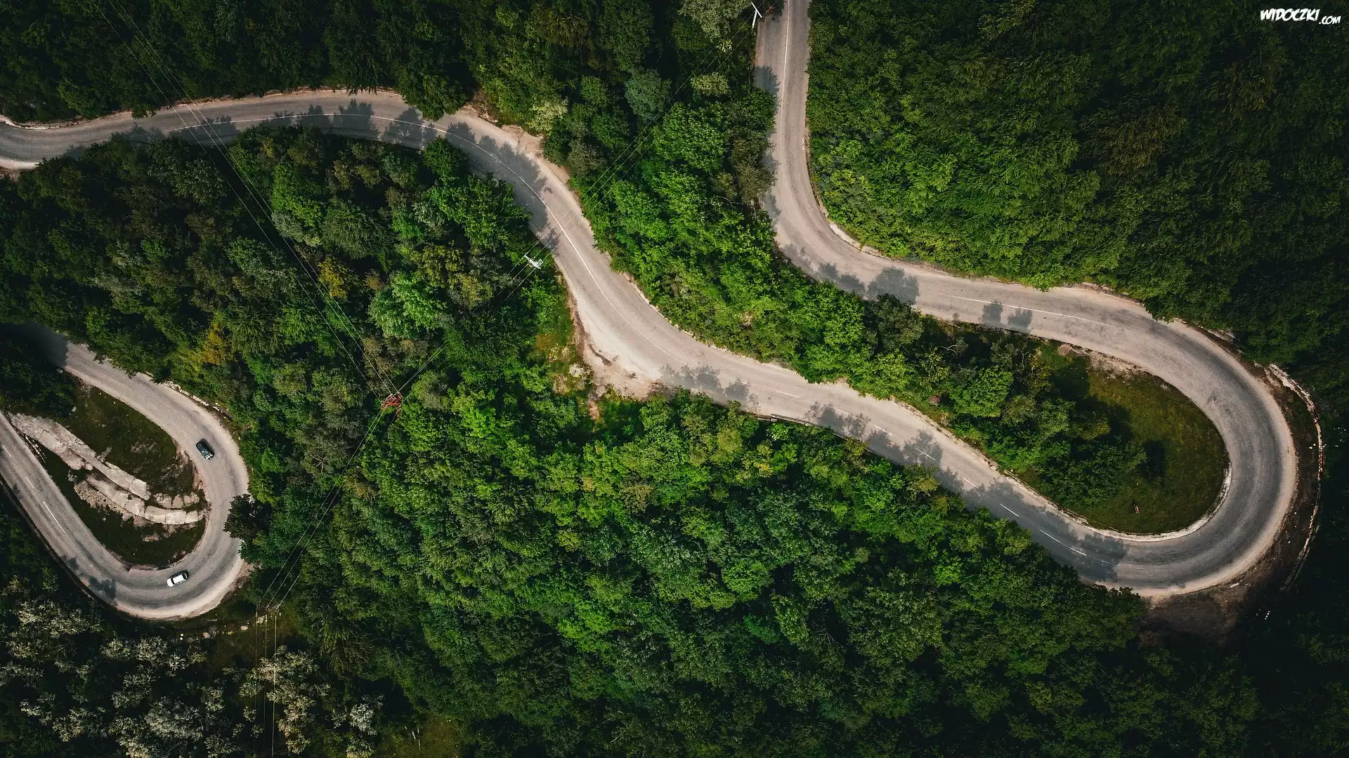 Zdjęcia, Drzewa, Las, Droga, Z lotu ptaka