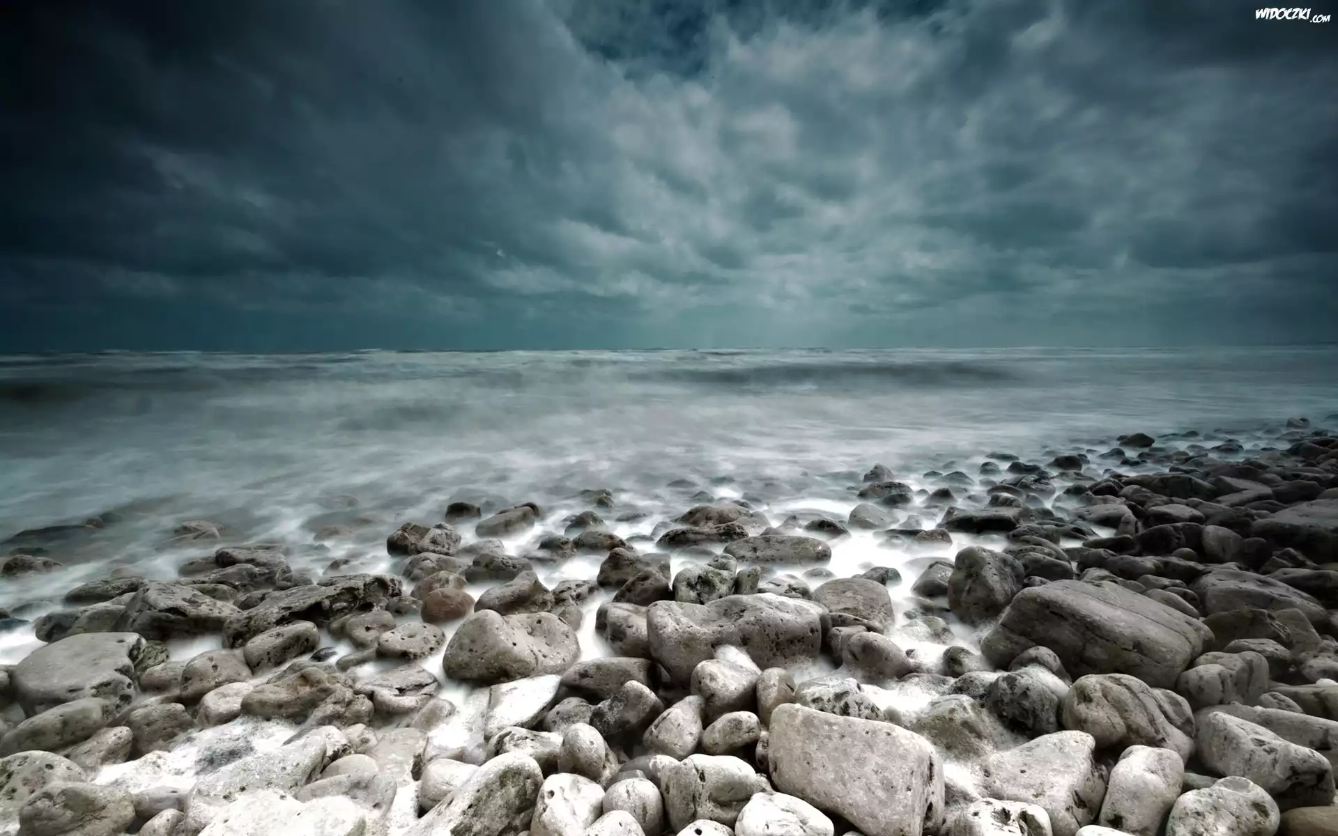 Zdjęcia, Zachmurzone, Niebo, Kamienista, Plaża