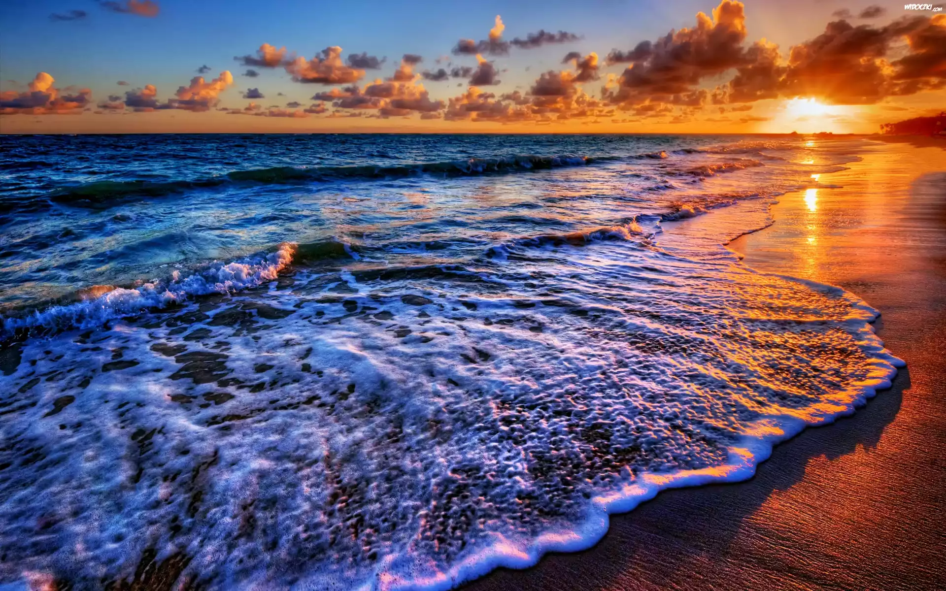 Zachóéd, Słońca, Chmury, Morze, Fale