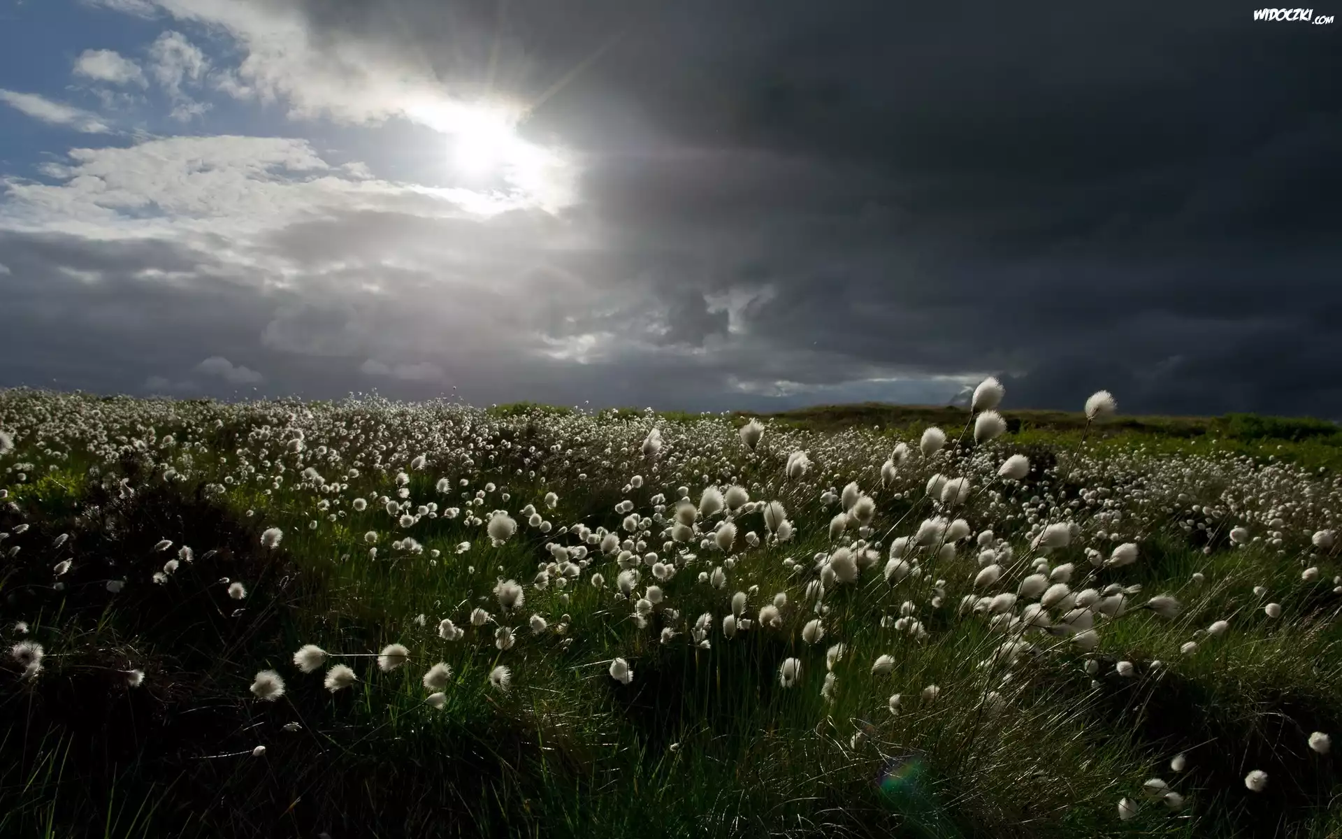 Zdjęcia, Zachód, Słońca, Łąka, Trawy