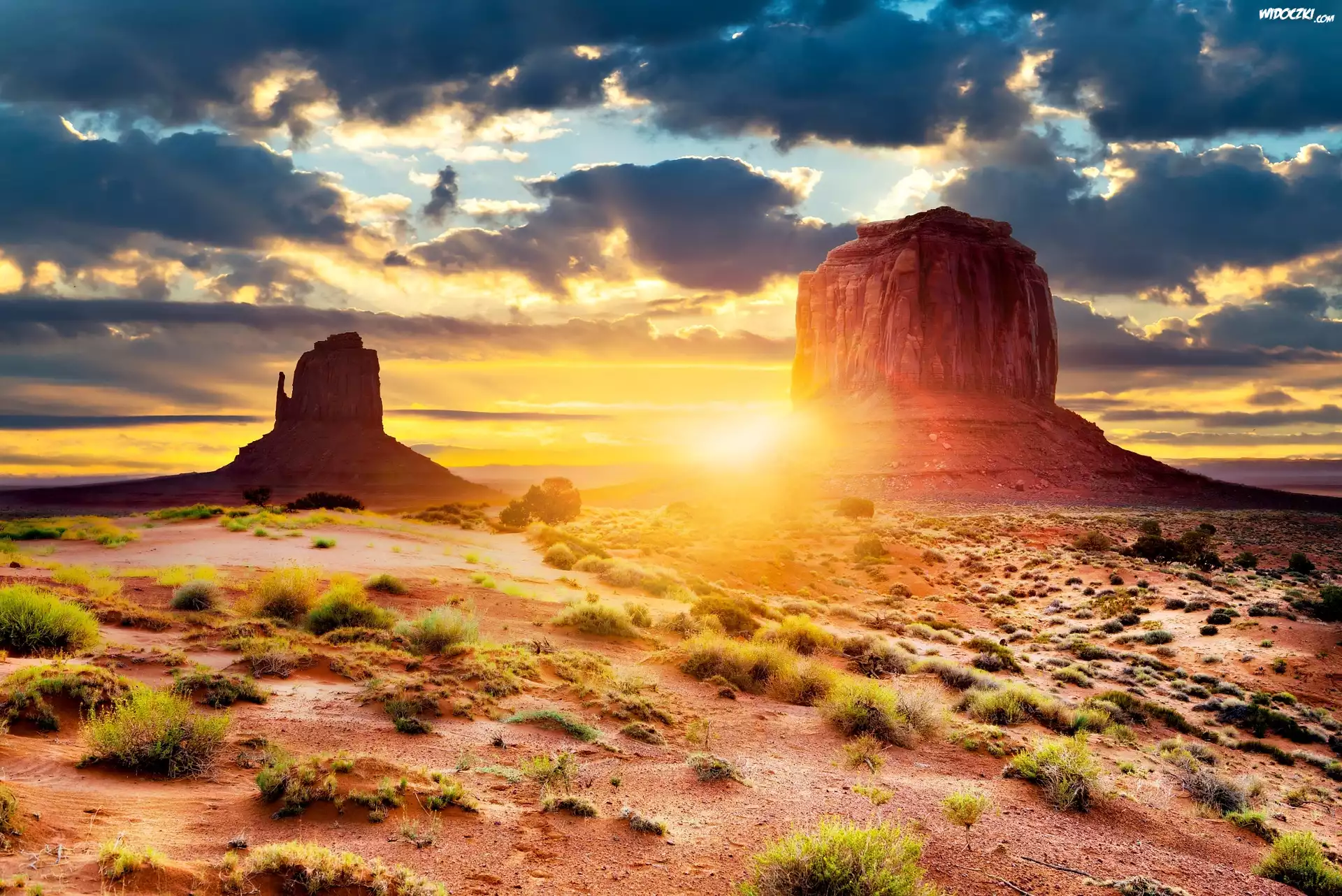 Zdjęcia, Zachód Słońca, Formacje Skalne, Arizona, USA
