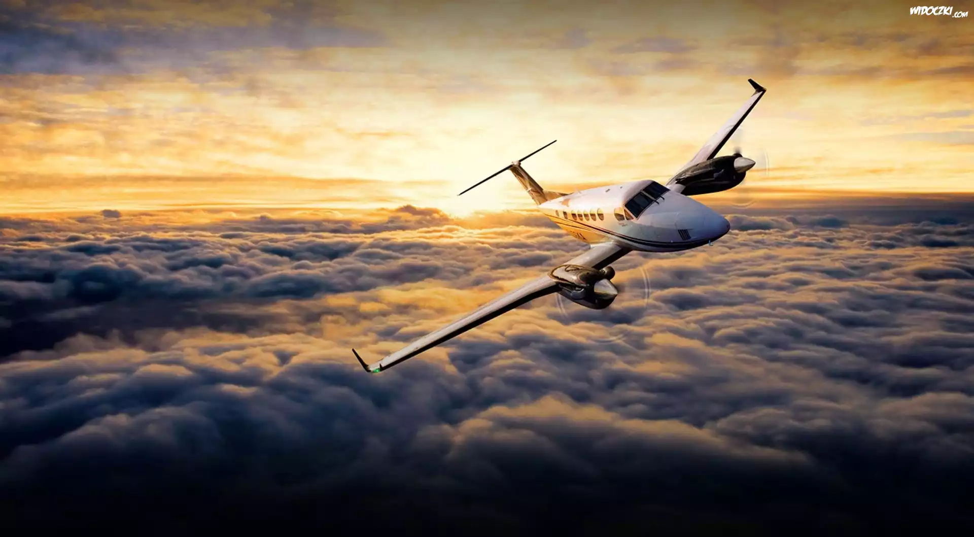 Zdjęcia, Zachód, Słońca, Awionetka, Chmury