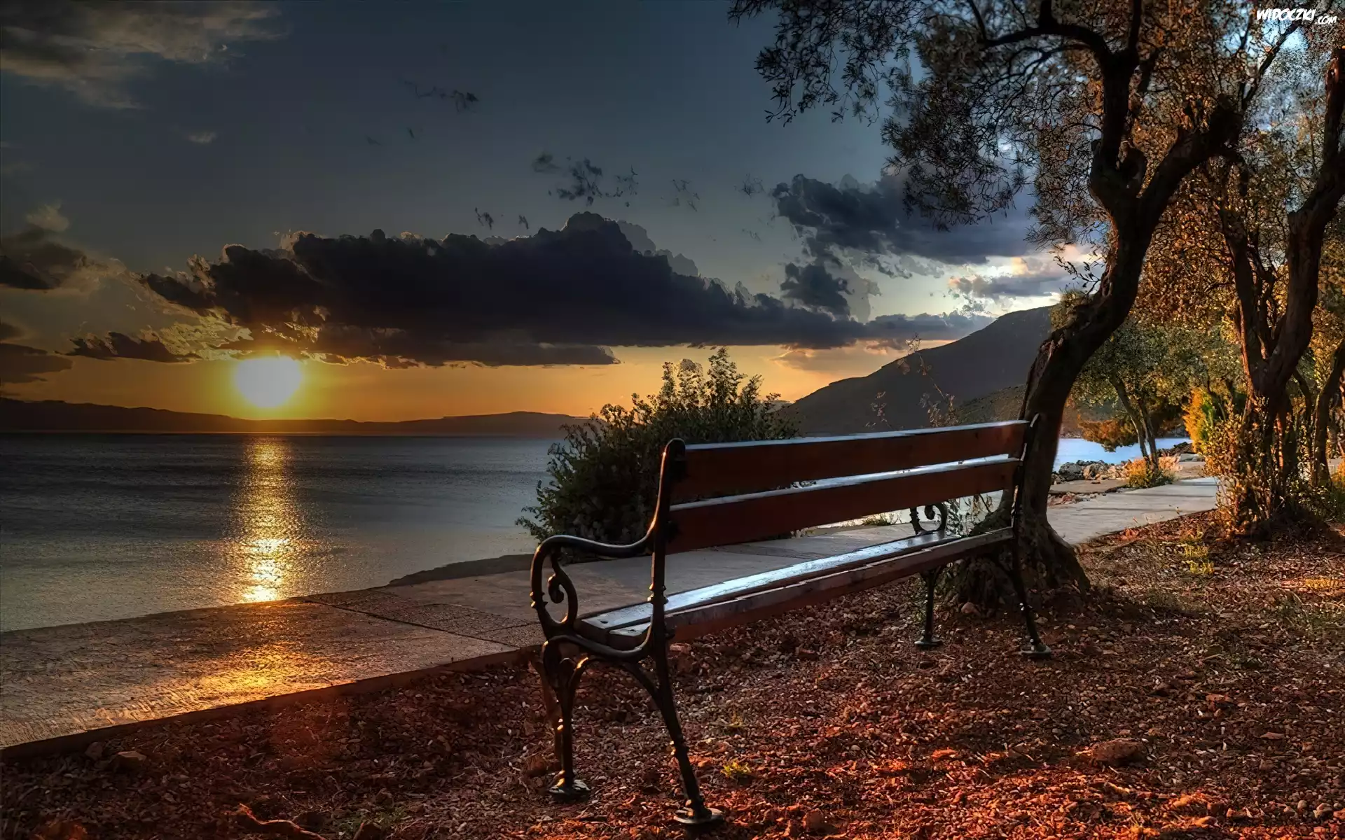 Zachód Słońca, Ławka, Morze