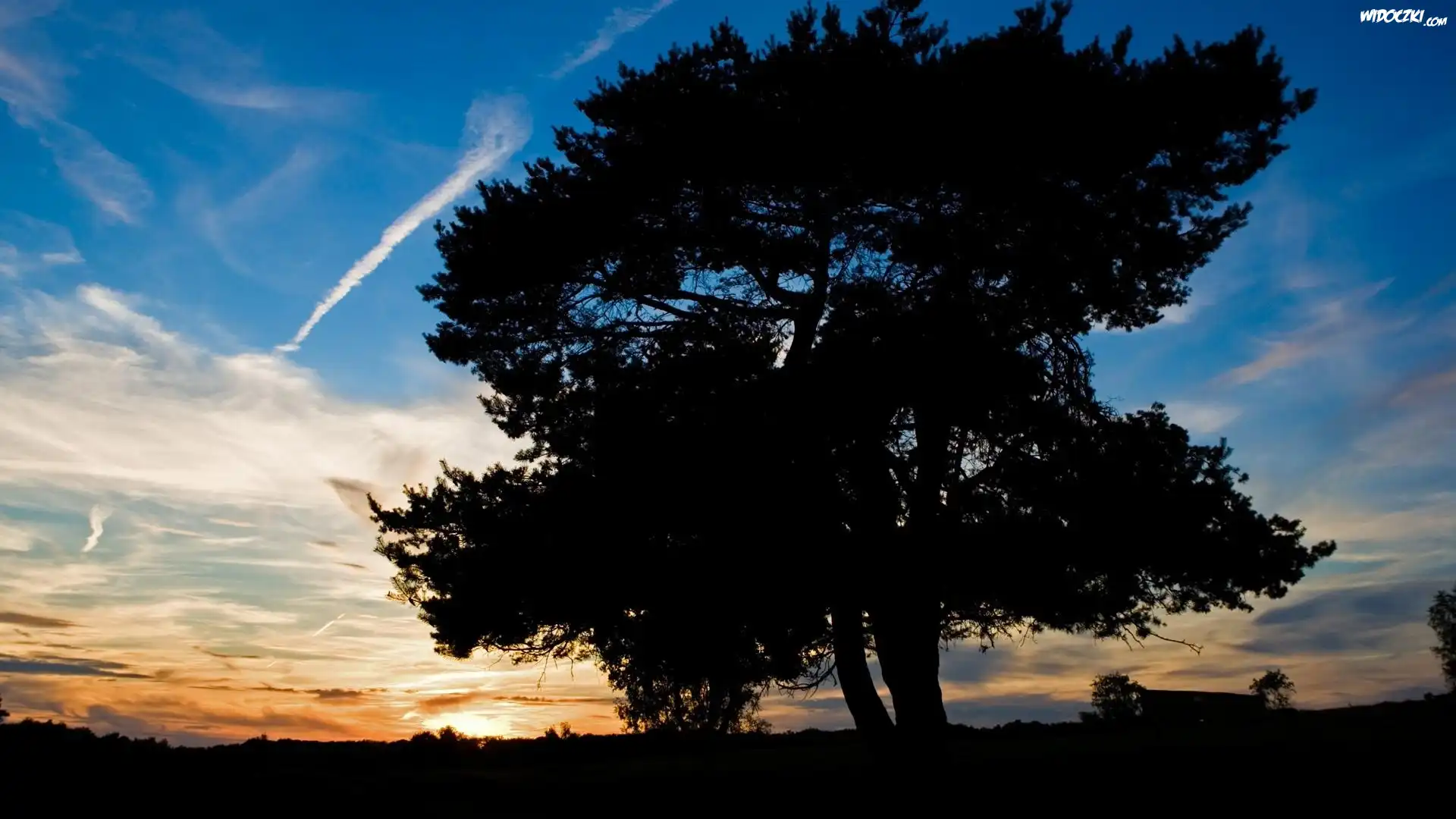 Zdjęcia, Zachód, Słońca, Pomarańczowo, Błękitne, Niebo