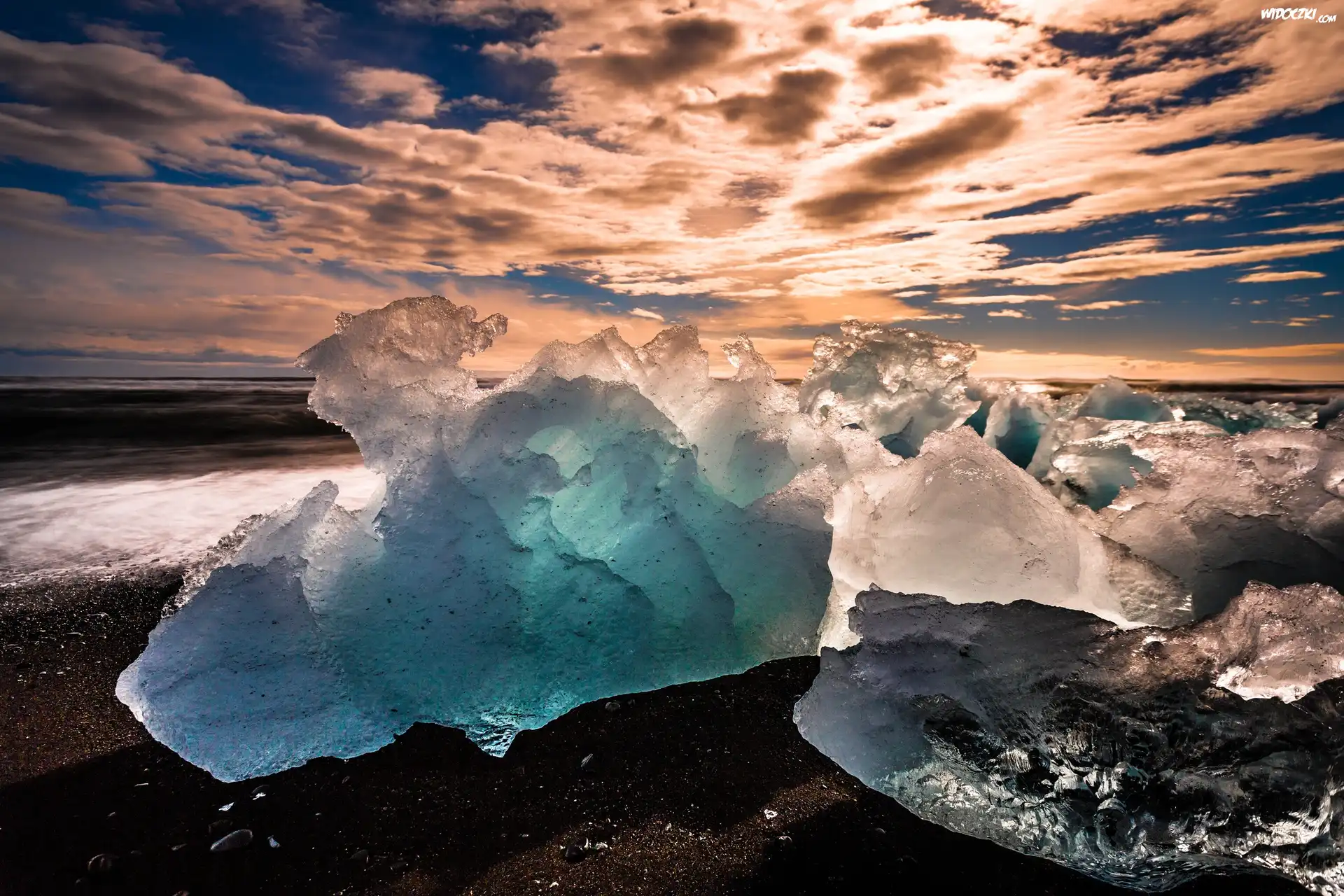 Zdjęcia, Zachód, Słońca, Bryły, Lodu