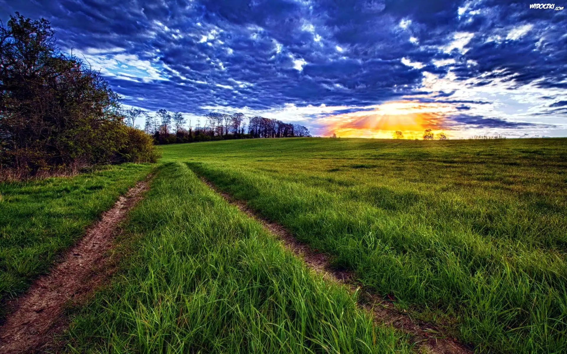 Łąka, Chmury, Zachód Słońca