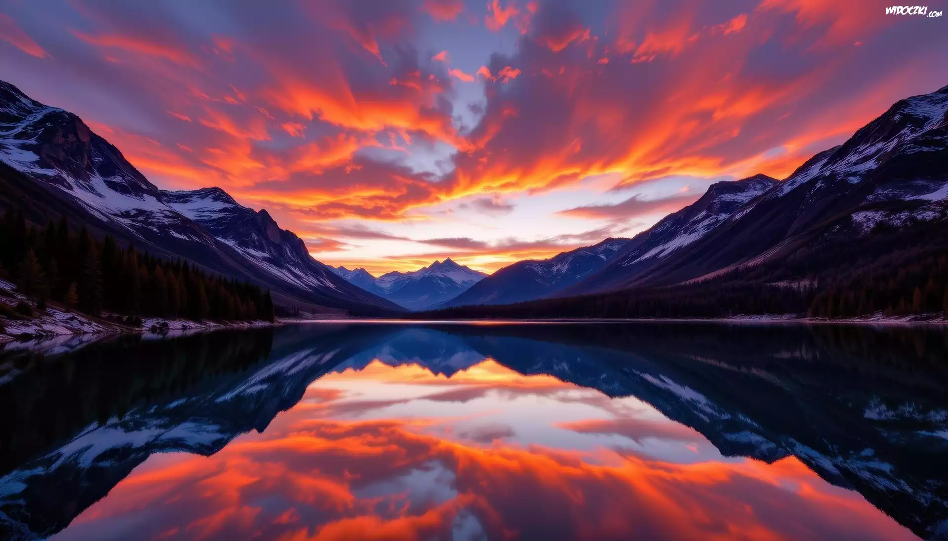 Zdjęcia, Jezioro, Góry, Chmury, Zachód słońca, Grafika AI