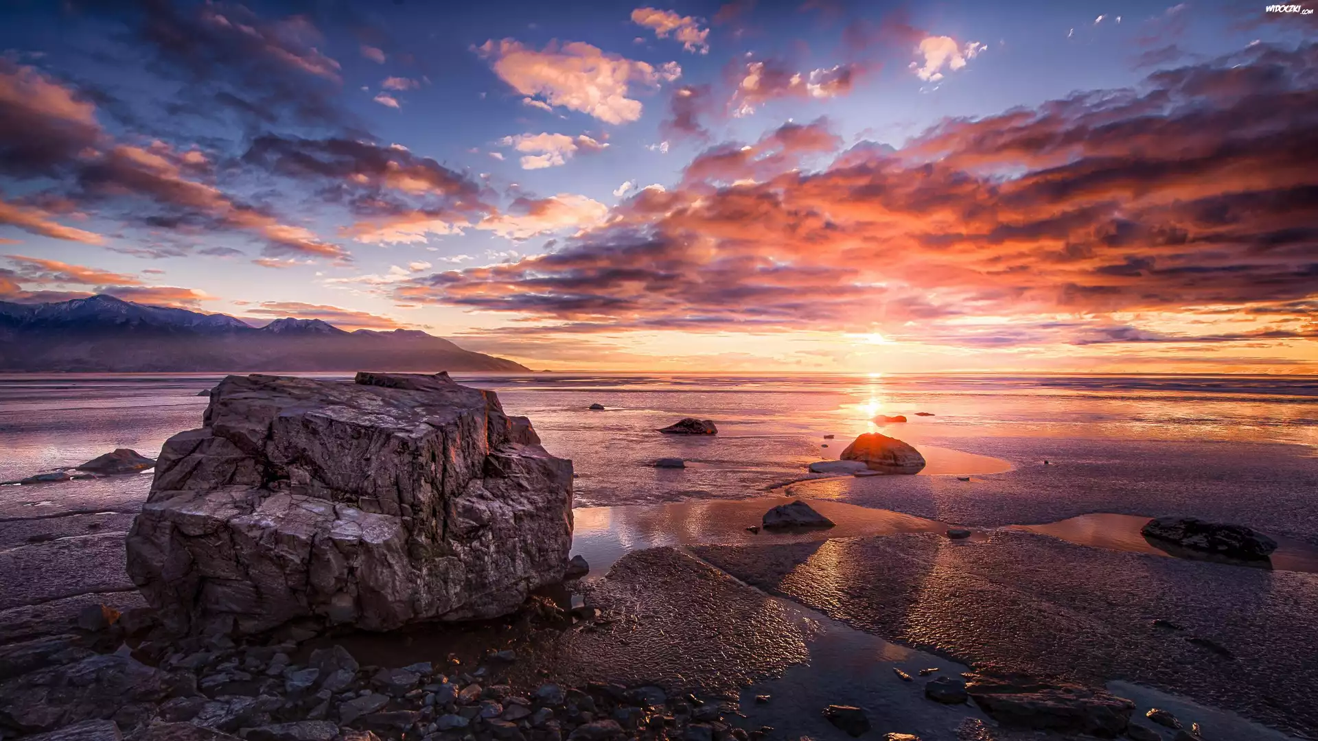 Zachód słońca, Kamienie, Chmury, Morze
