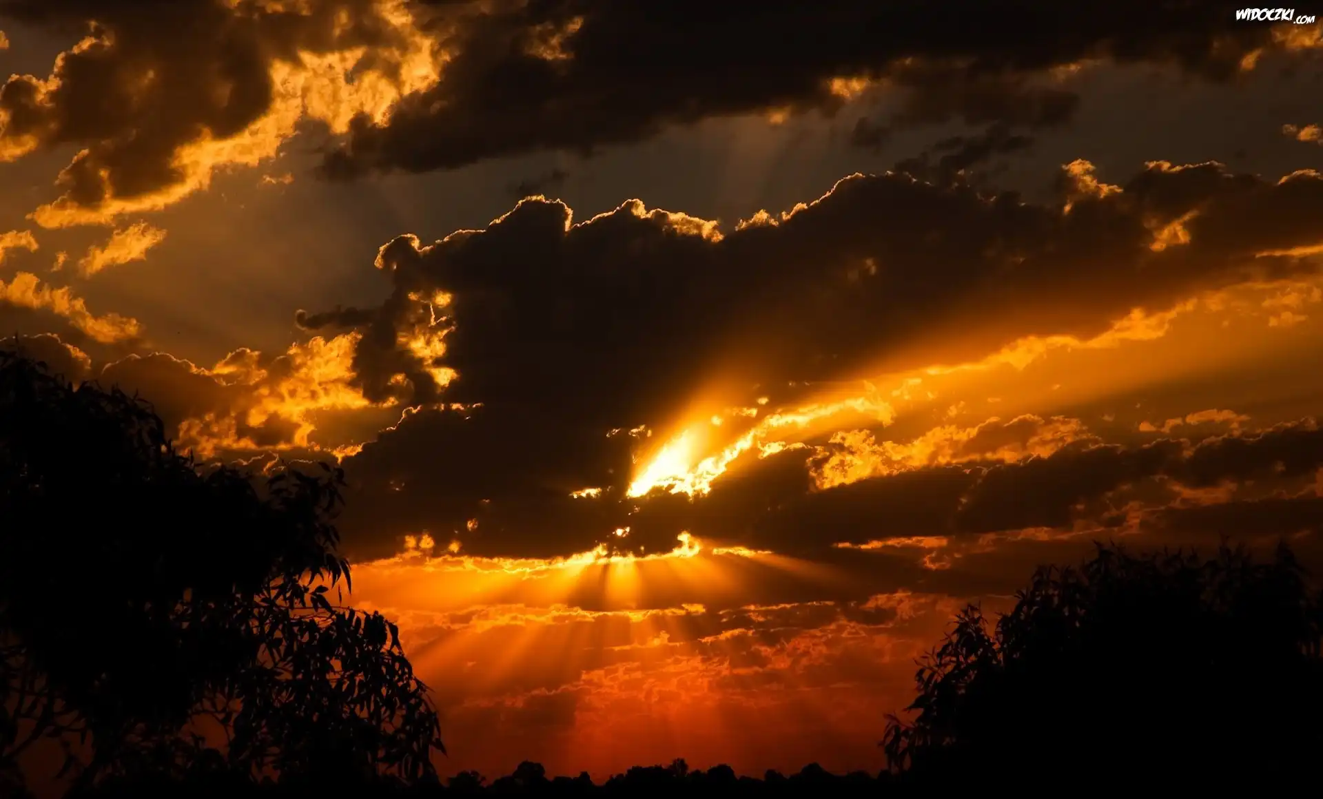Zdjęcia, Zachód, Słońca, Chmury, Drzewa