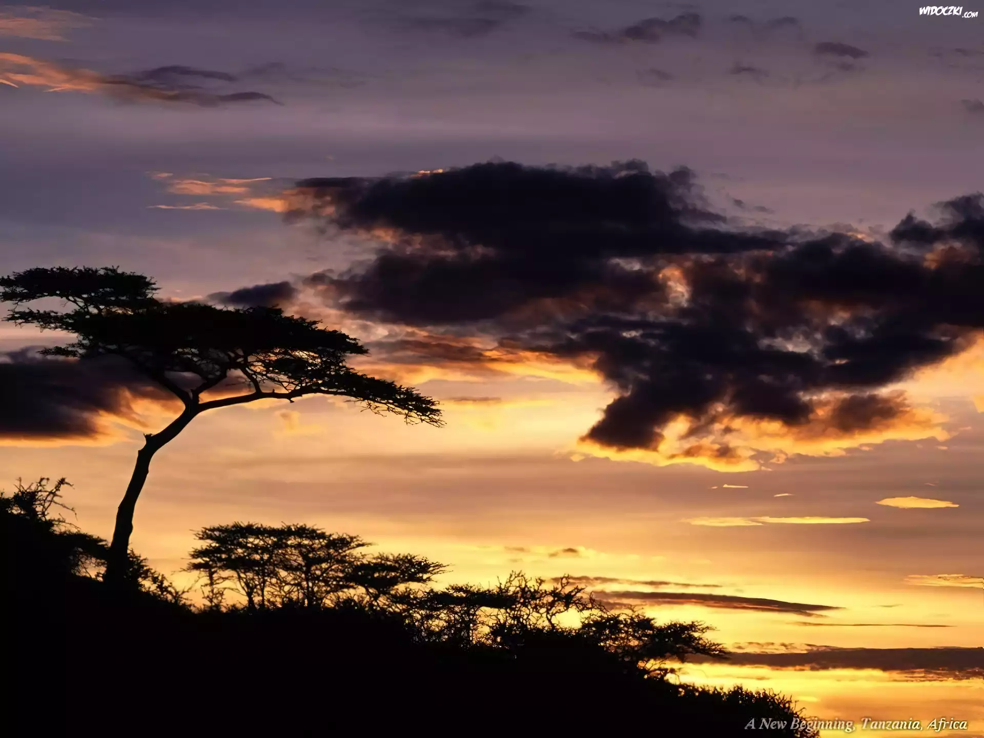 Zdjęcia, Zachód Słońca, Chmury, Drzewo