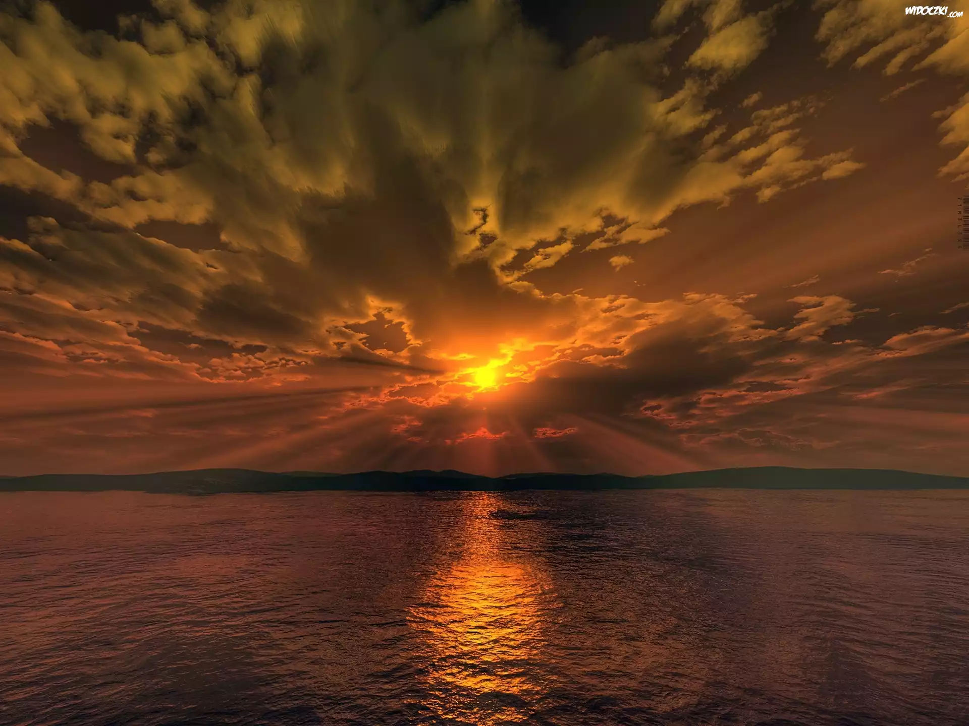 Zachód, Słońca, Chmury, Jezioro