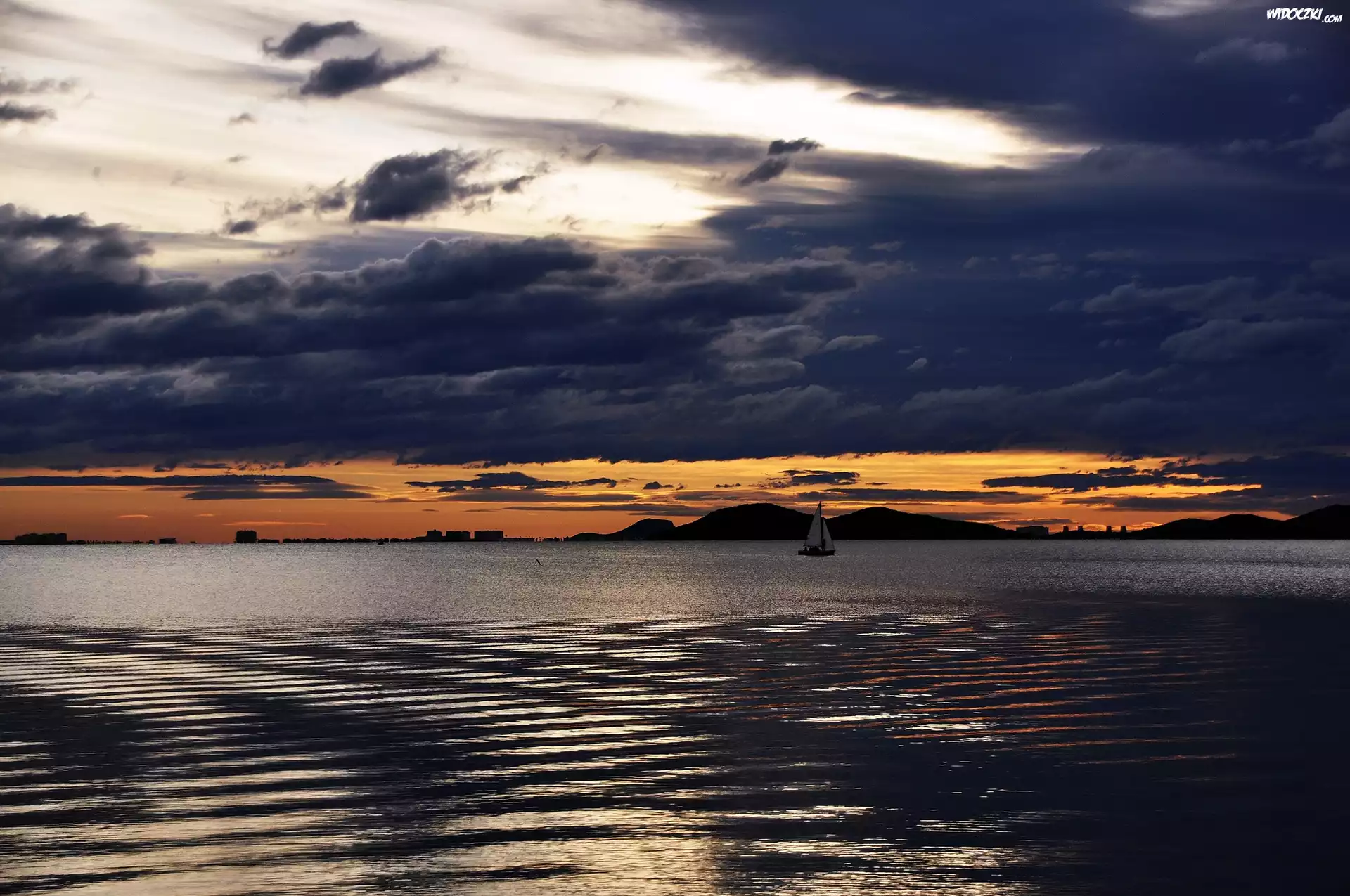 Zdjęcia, Zachód, Słońca, Chmury, Jezioro