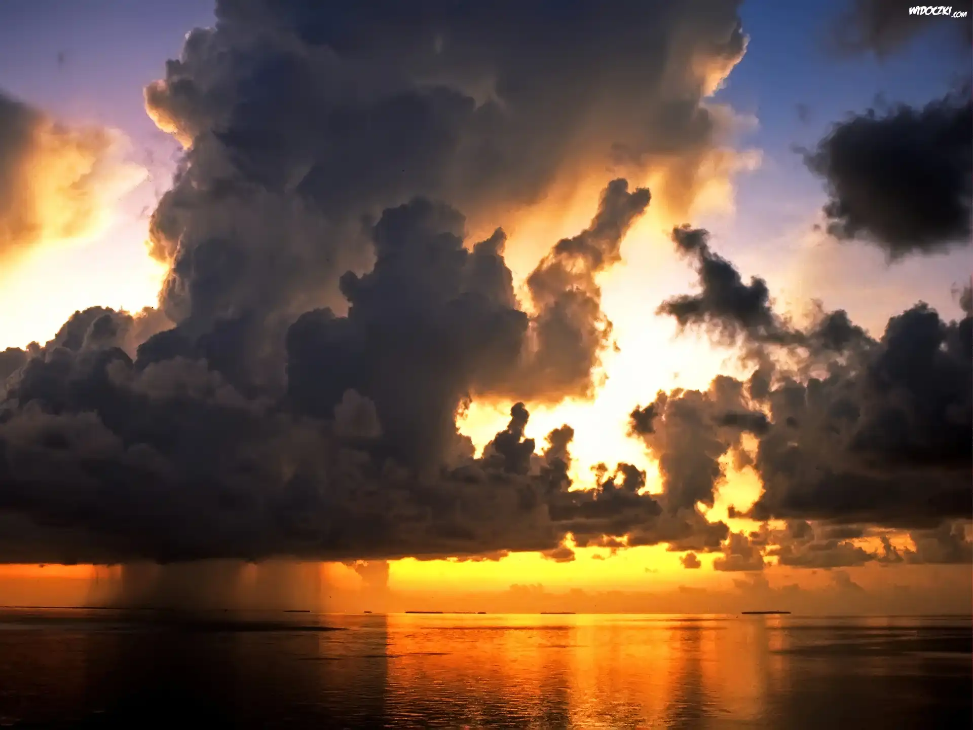 Zachód, Słońca, Chmury, Morze