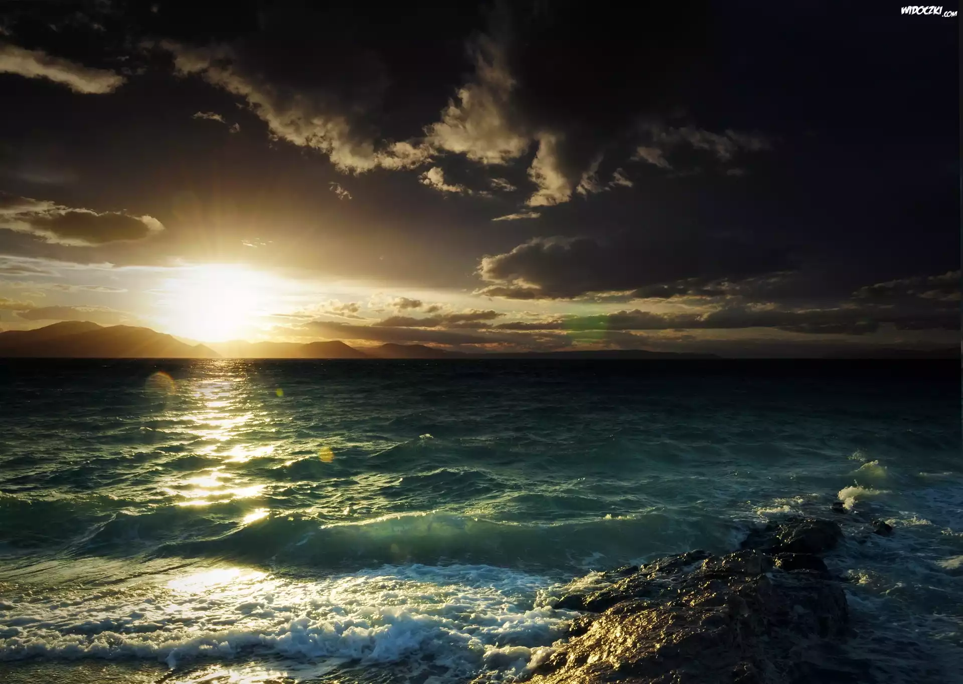 Zdjęcia, Zachód, Słońca, Chmury, Morze