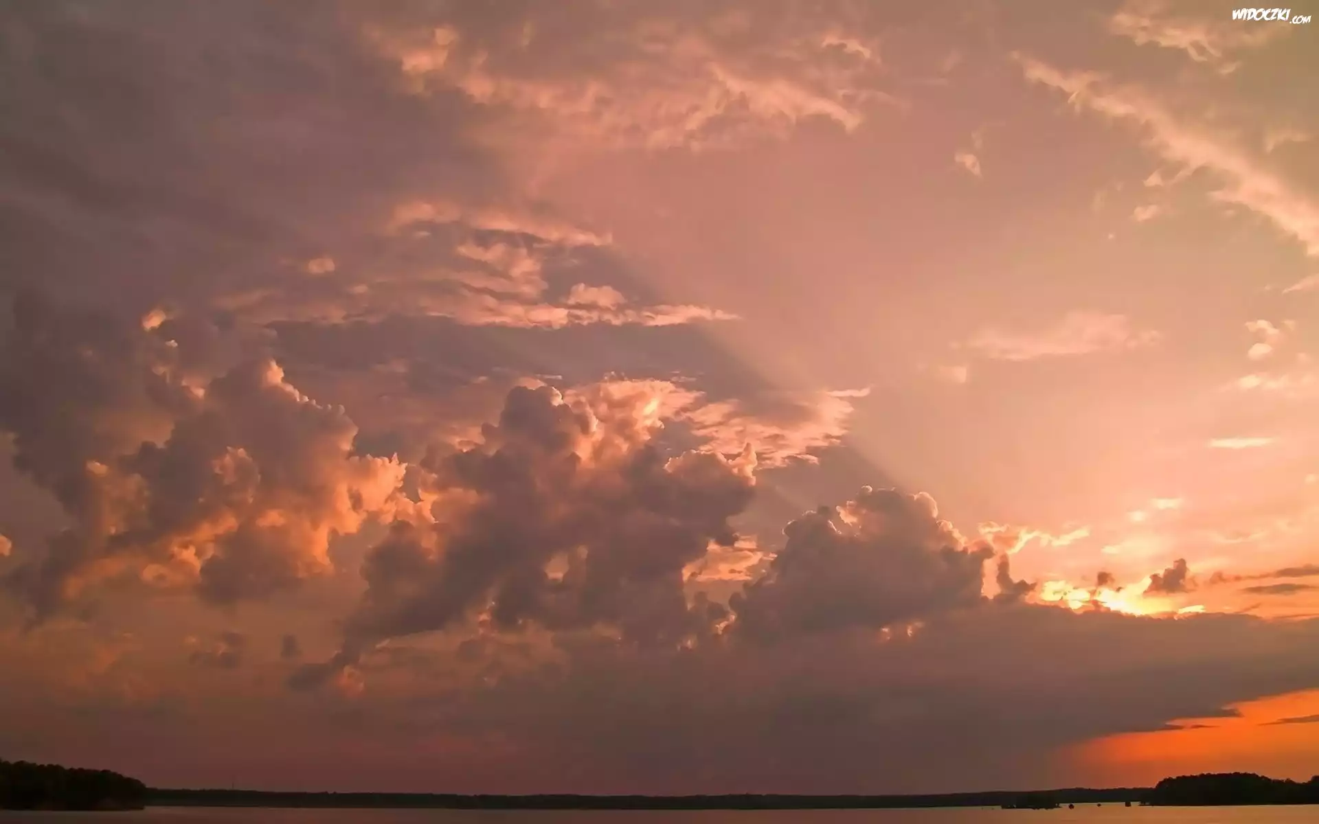 Zdjęcia, Zachód, Słońca, Chmury, Niebo