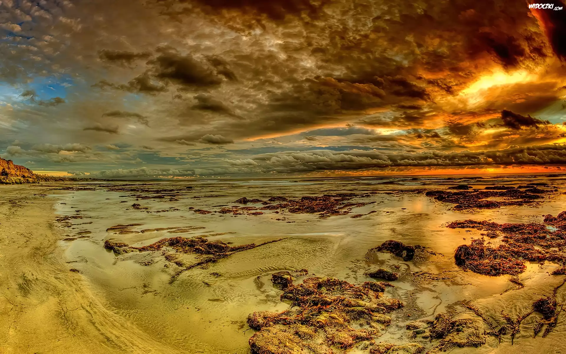 Zdjęcia, Zachód Słońca, Chmury, Plaża