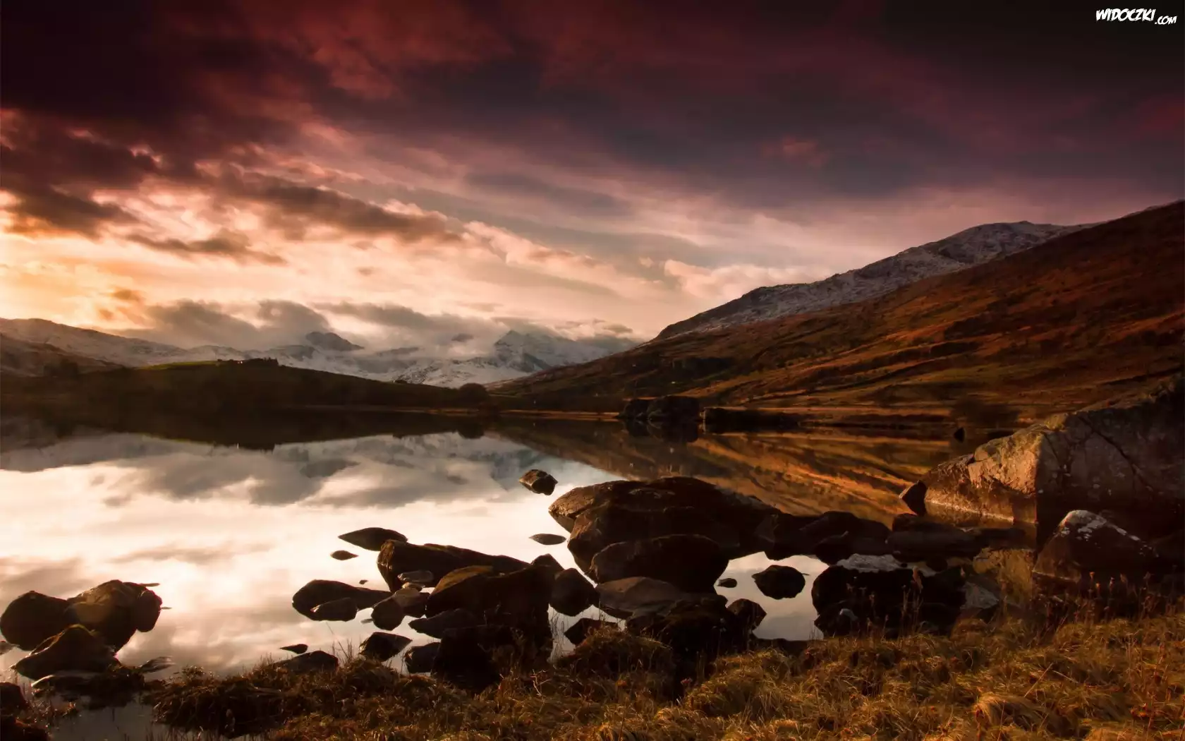 Zdjęcia, Zachód, Słońca, Chmury, Skały