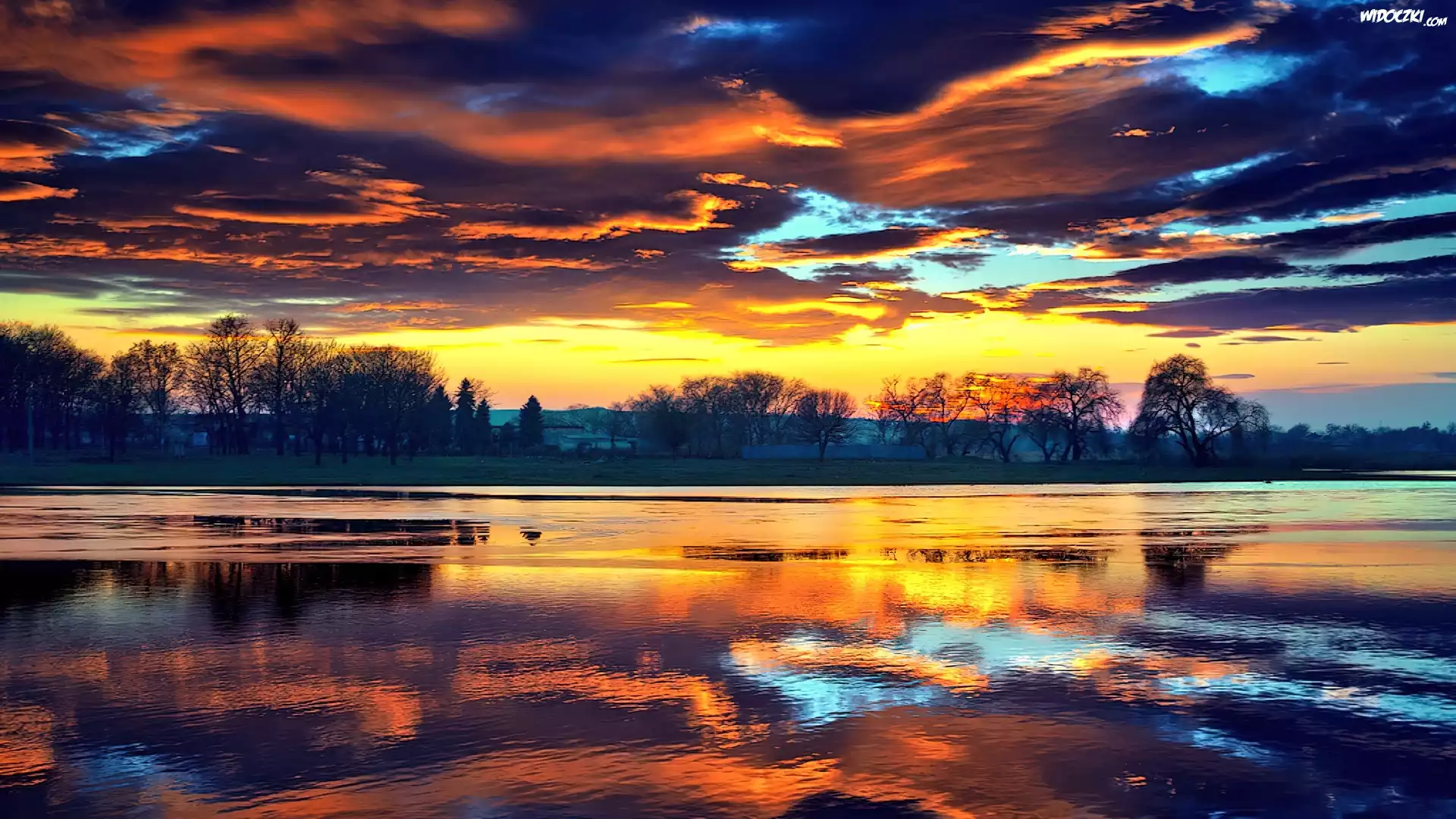 Zdjęcia, Zachód, Słońca, Chmury, Woda