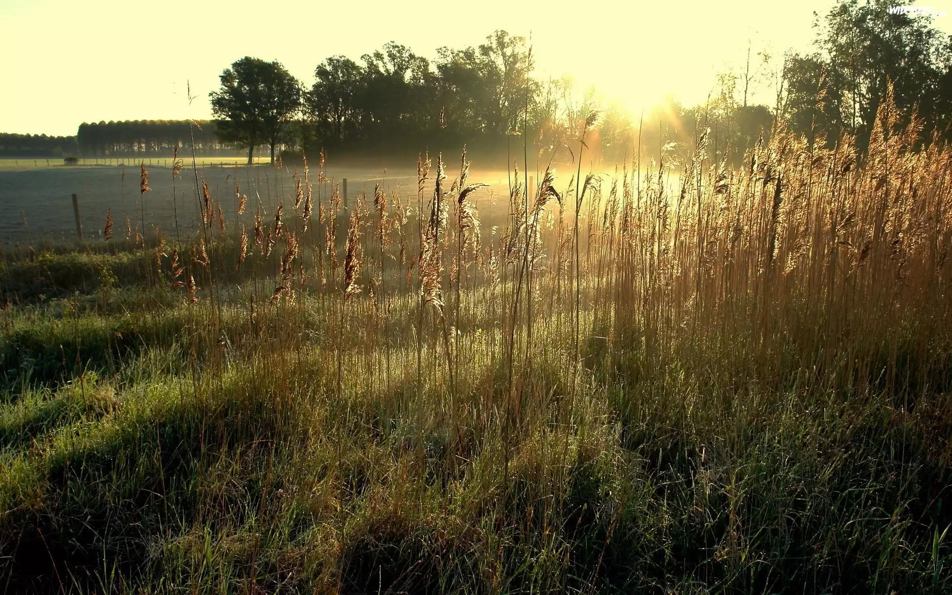 Zachód, Słońca, Jezioro, Czciny, Drzewa