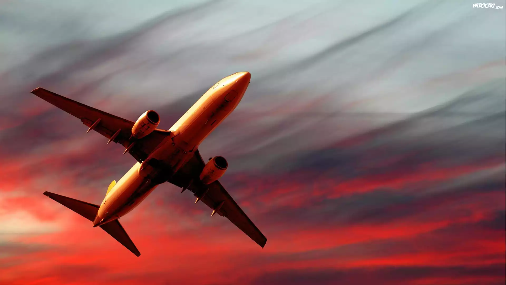 Zdjęcia, Zachód Słońca, Odrzutowiec, Czerwone, Niebo