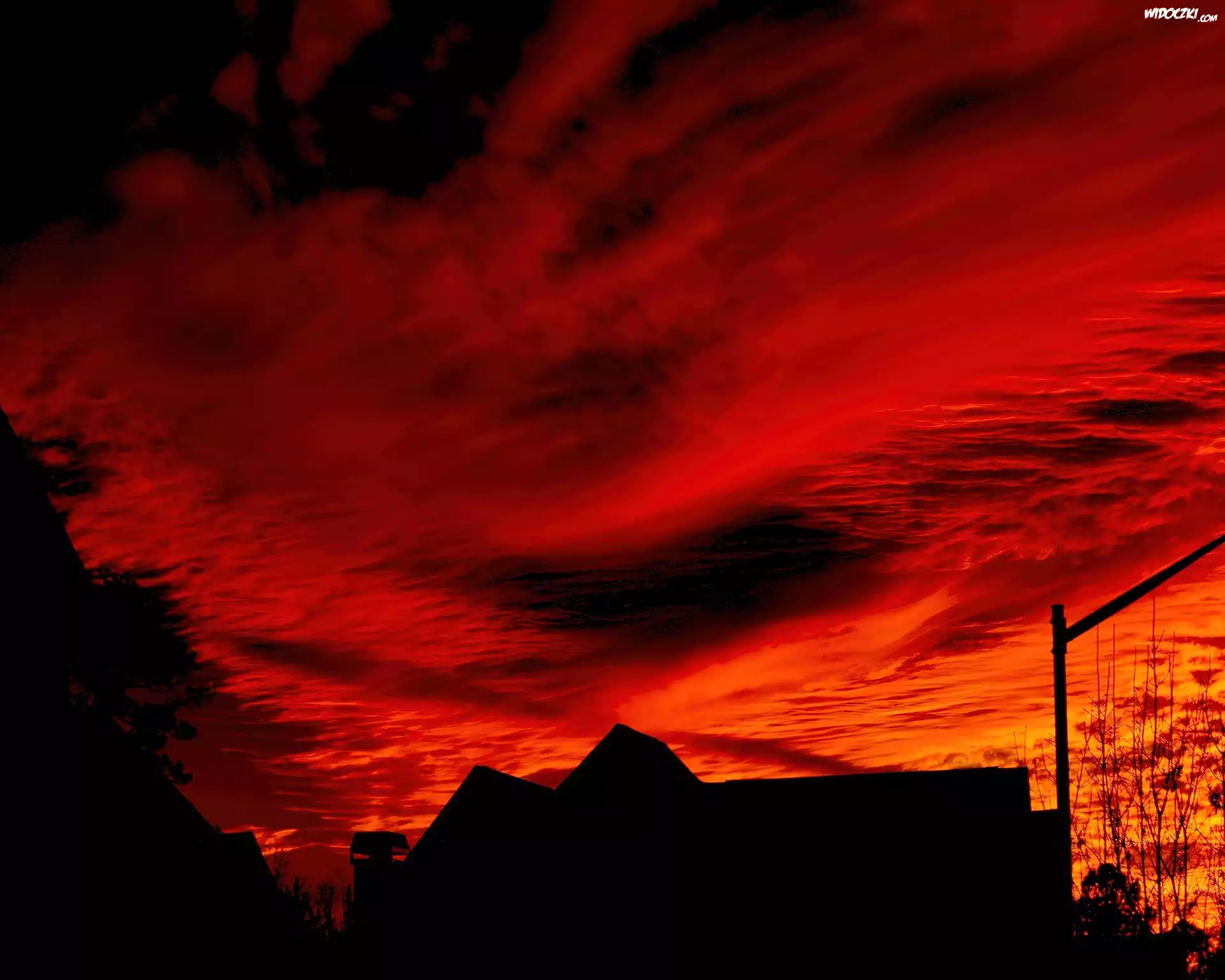 Zdjęcia, Zachód, Słońca, Czerwone, Niebo