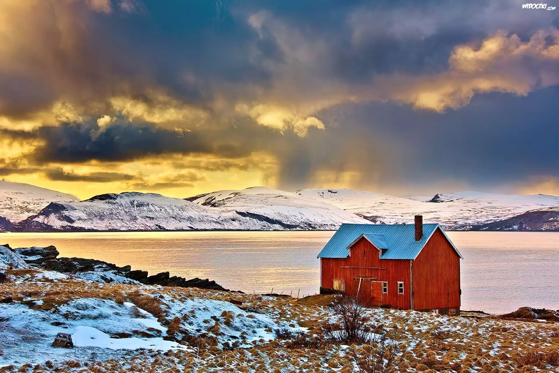 Zdjęcia, Zachód, Słońca, Dom, Jezioro