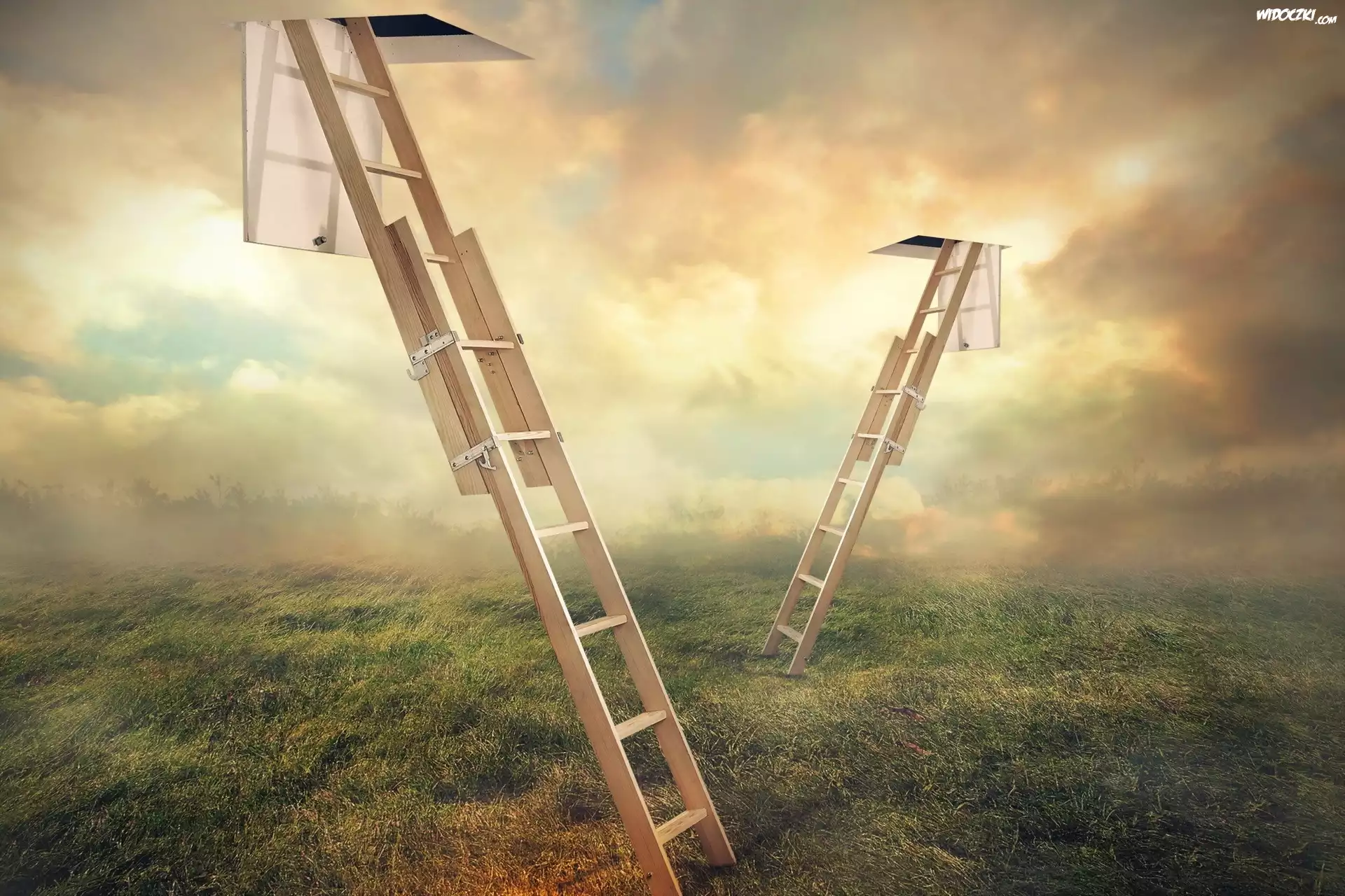 Zdjęcia, Zachód, Słońca, Drabiny, Trawa