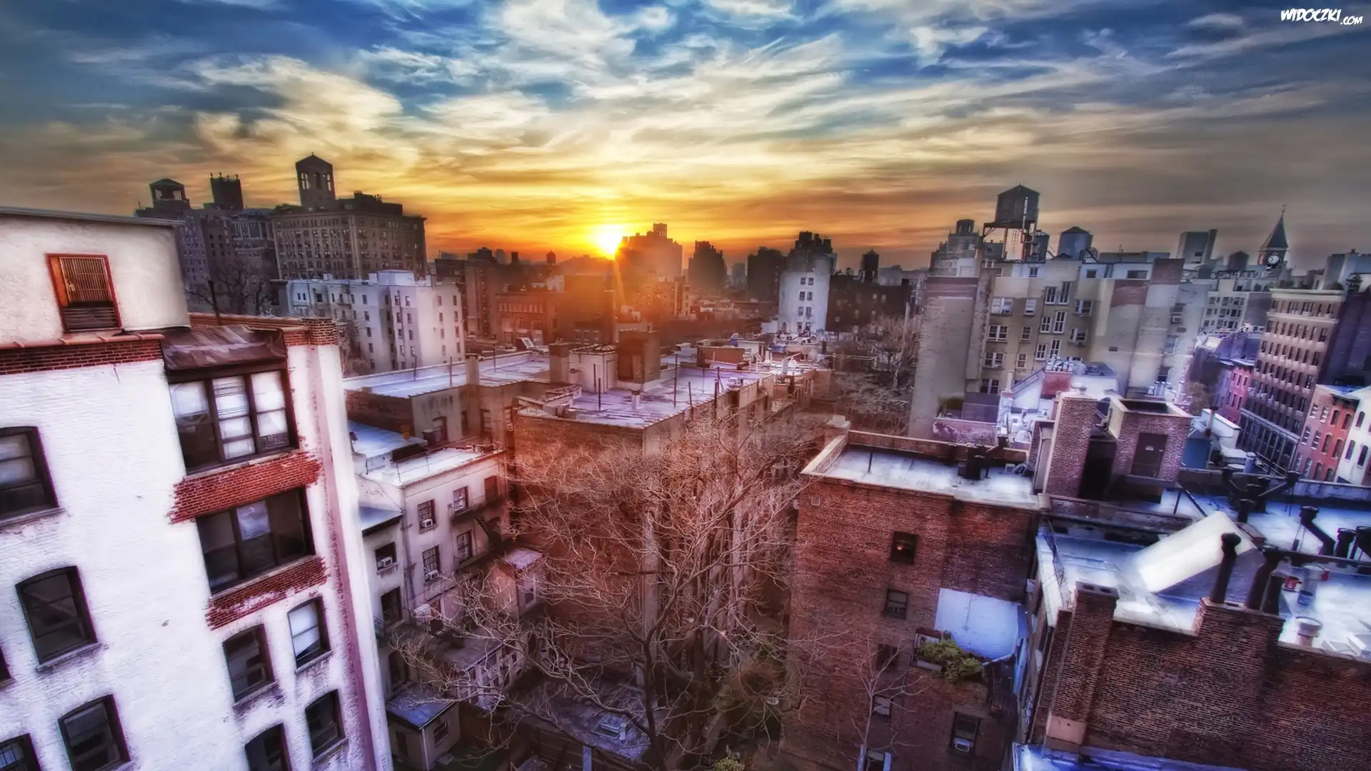 Zdjęcia, Zachód, Słońca, Nowy, Jork, Drapacze, Chmur