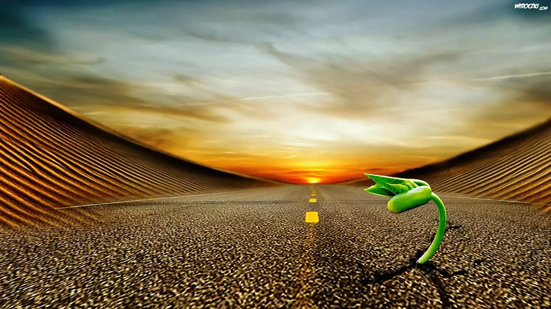 Zdjęcia, Zachód, Słońca, Droga, Roślina