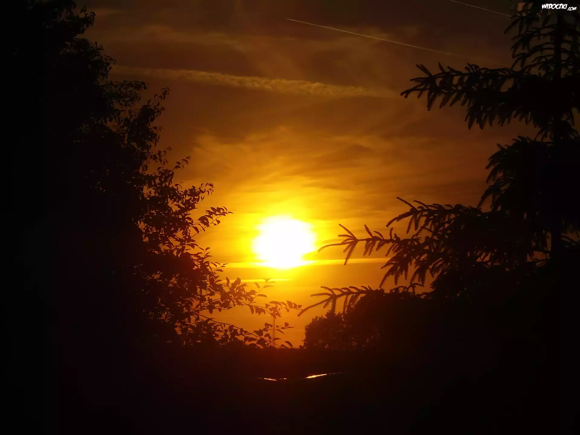 Zdjęcia, Drzewa, Zachód, Słońca