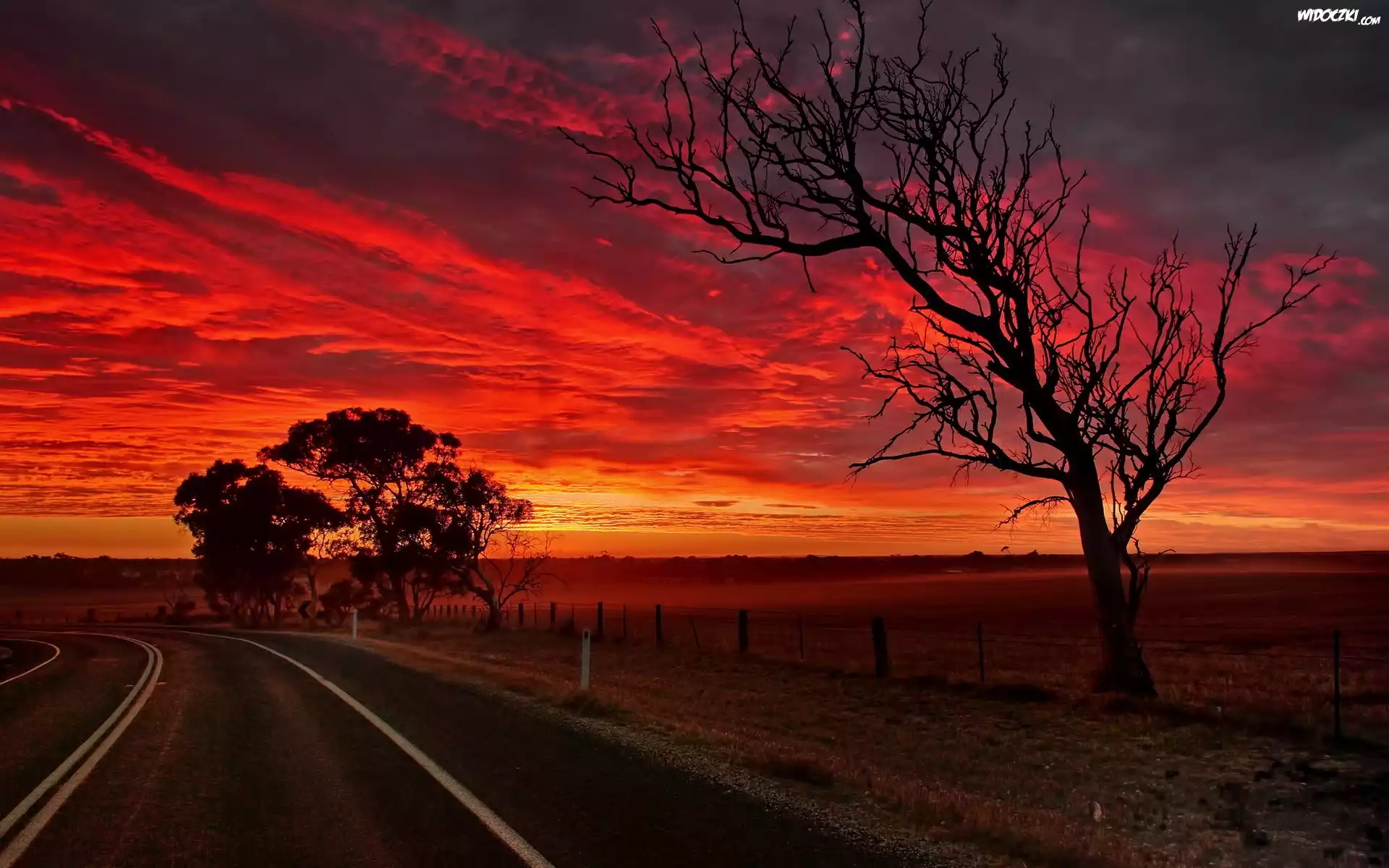 Zdjęcia, Zachód, Słońca, Drzewa, Droga