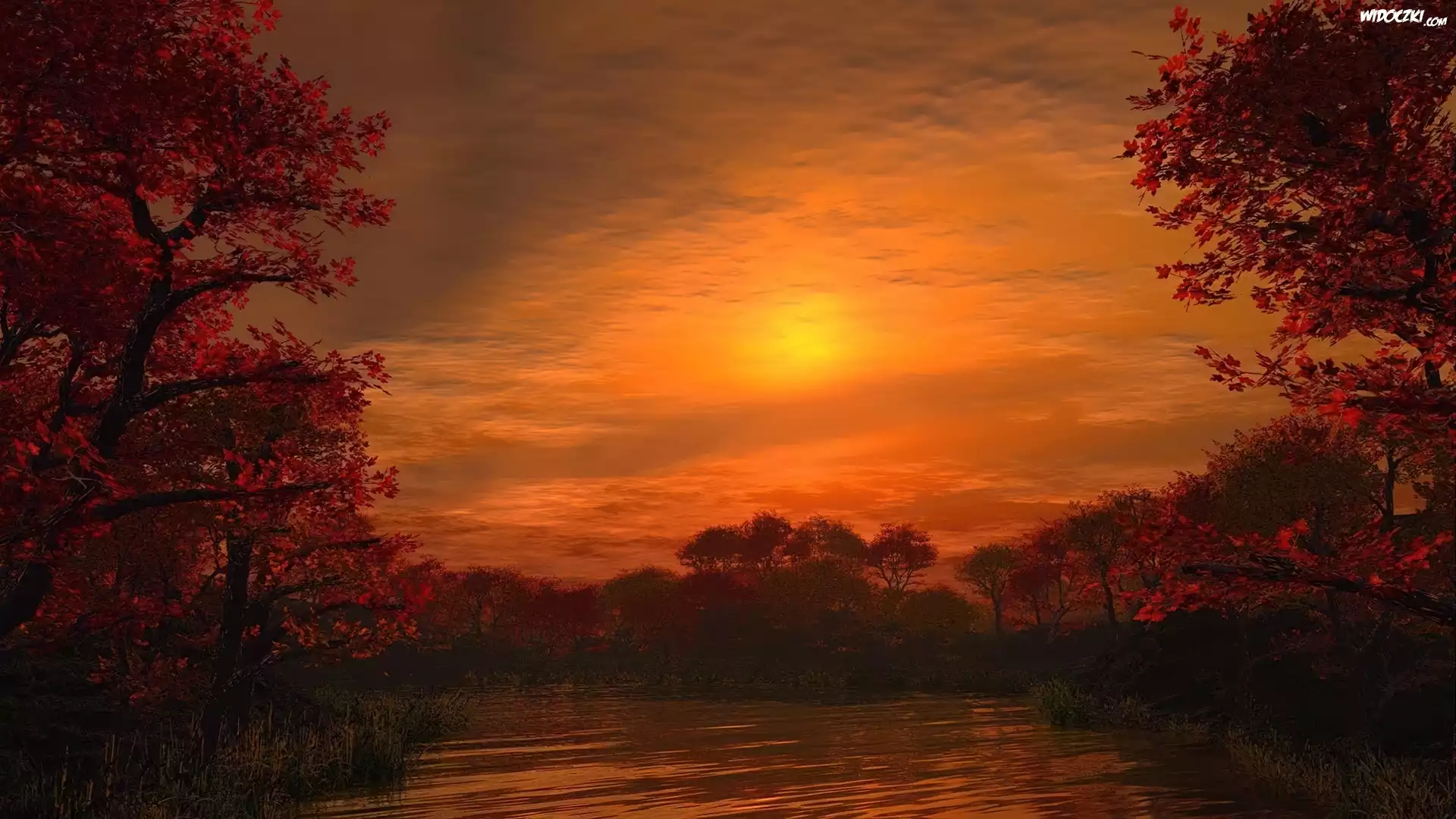 Zachód Słońca, Drzewa, Jesień
