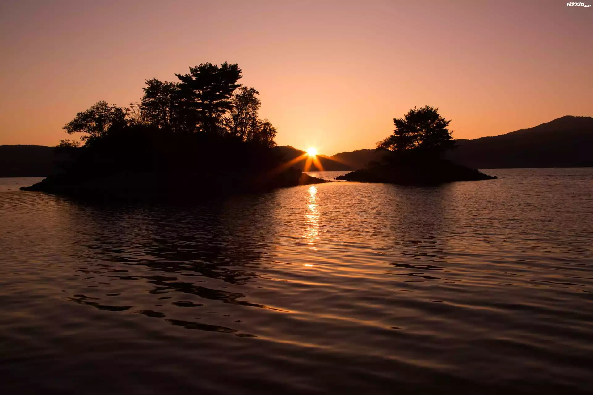 Zdjęcia, Zachód słońca, Drzewa, Jezioro