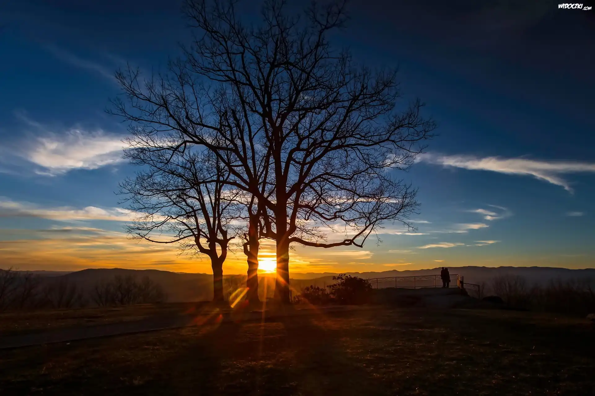 Zdjęcia, Zachód, Słońca, Drzewa, Ludzie