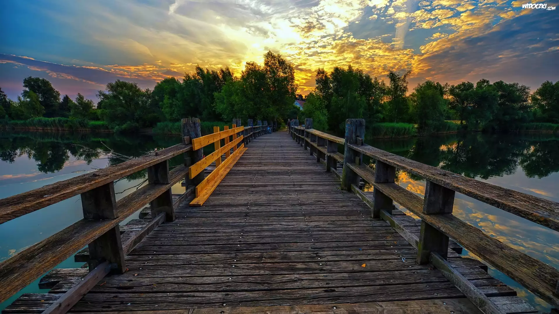 Zdjęcia, Zachód, Słońca, Drzewa, Most